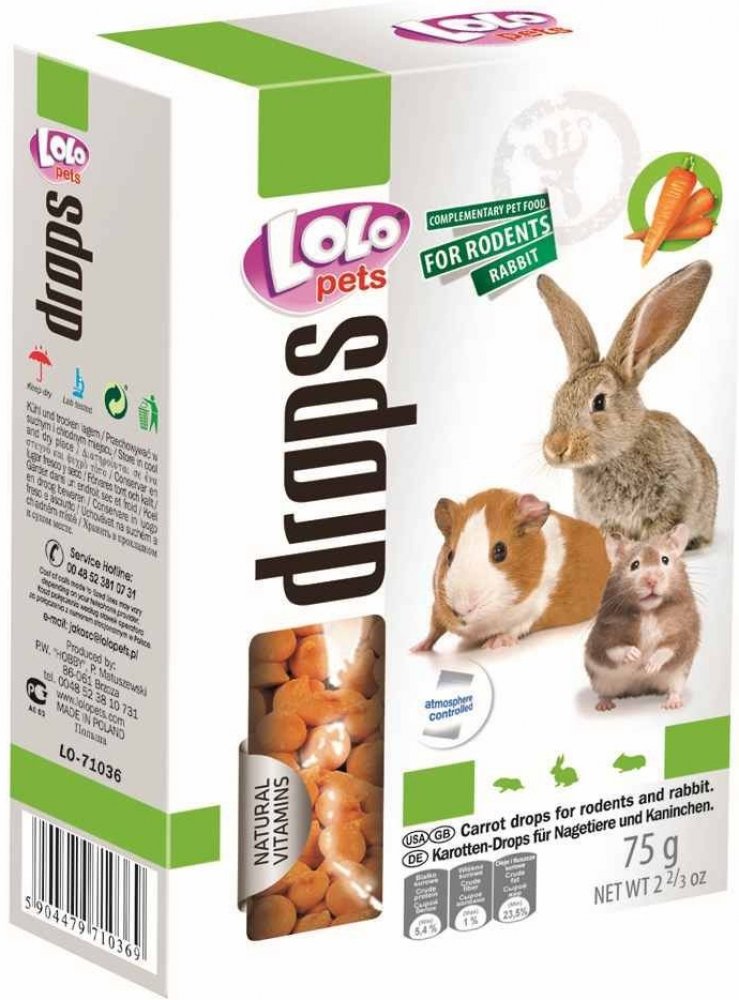 Lolo Dropsy mrkvové pro hlodavce 75 g
