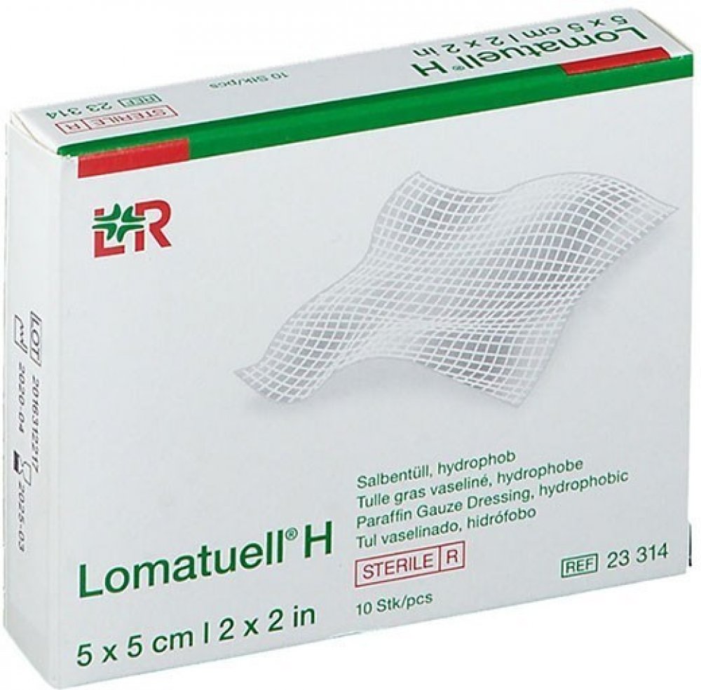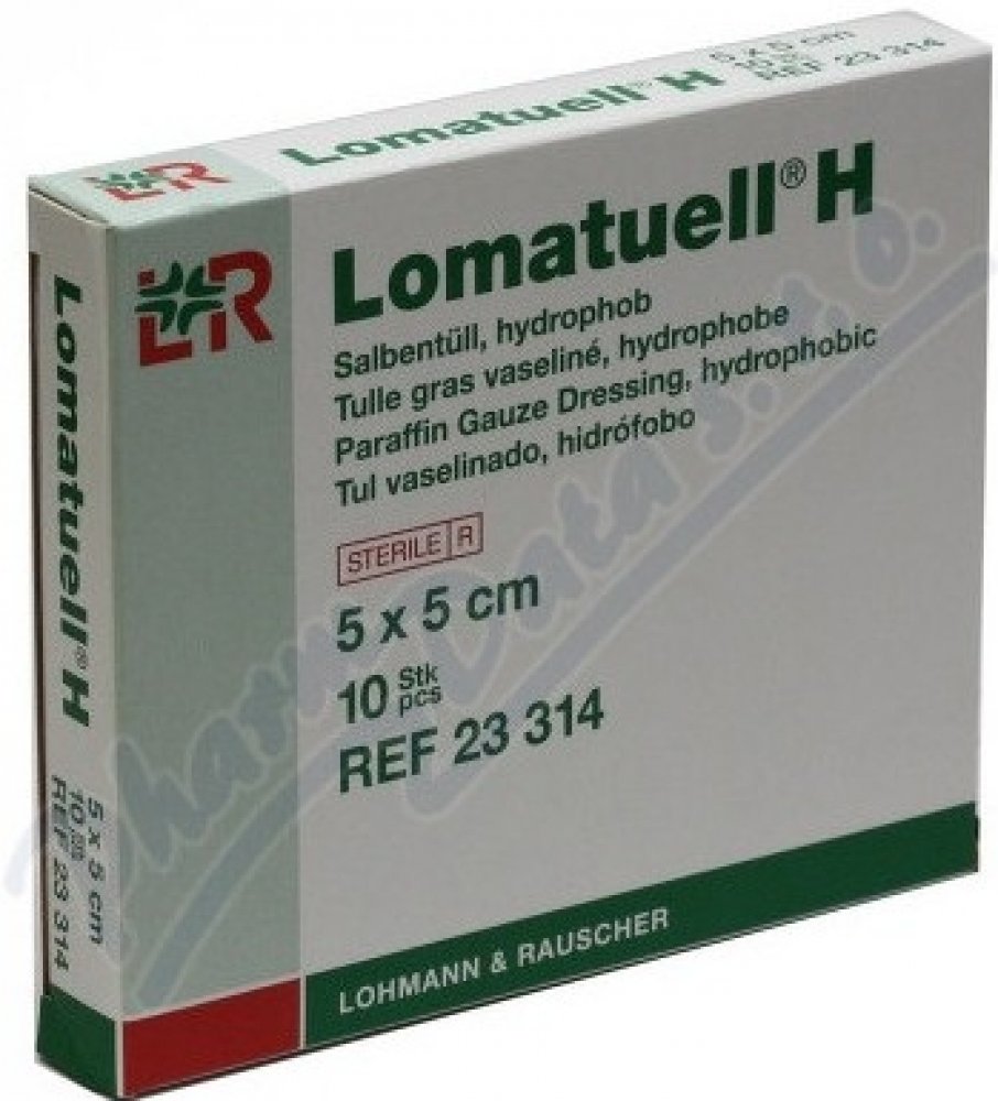 Masťový mřížkový tyl Lomatuell H impregnovaný bílou vazelínou a z obou stran zakrytý pergaminem. Poskytuje klid při hojení a podporuje přirozený průběh hojení. Tyl s velkými oky podporuje snadný odvod exsudátu. Bílá vazelína chrání povrchové rány před přilepením. Lze podle potřeby nastříhat do požadovaného tvaru.