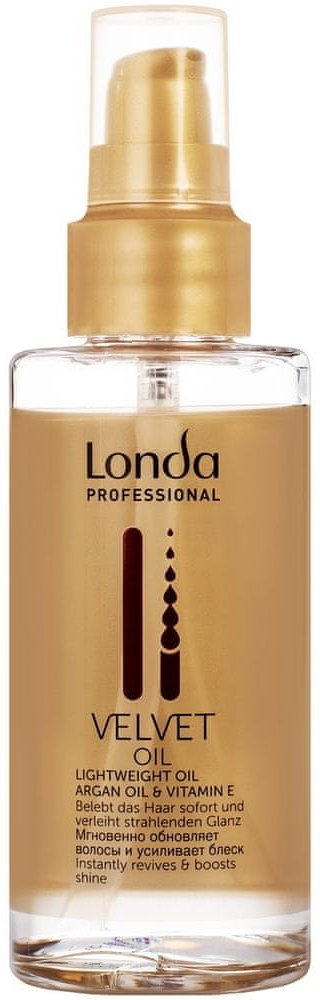 Nadstandardní řada produktů Londa Professional pro oživení, hydrataci a lesk vlasů. Řada Velvet Oil je vhodná, jak pro barvené, tak pro zcela přírodní vlasy. Složení s Arganovým olejem a vitamínem E, který vyživuje vlas a chrání jej před UV poškozením, způsobující rychlejší stárnutí a slábnutí vlasu.