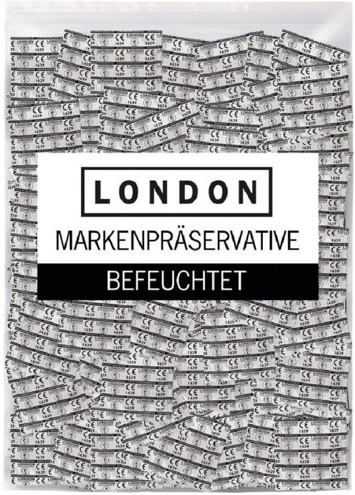 Klasické kondomy 100 průhledných kondomů LONDON je potaženo silikonovým lubrikantem a má savičky na konci. Jsou jednotlivě baleny (6 x 6 cm) a dodávají se v sáčku. Velikost: běžná. Tloušťka: 0,07 mm. Jmenovitá šířka: 52 mm.
