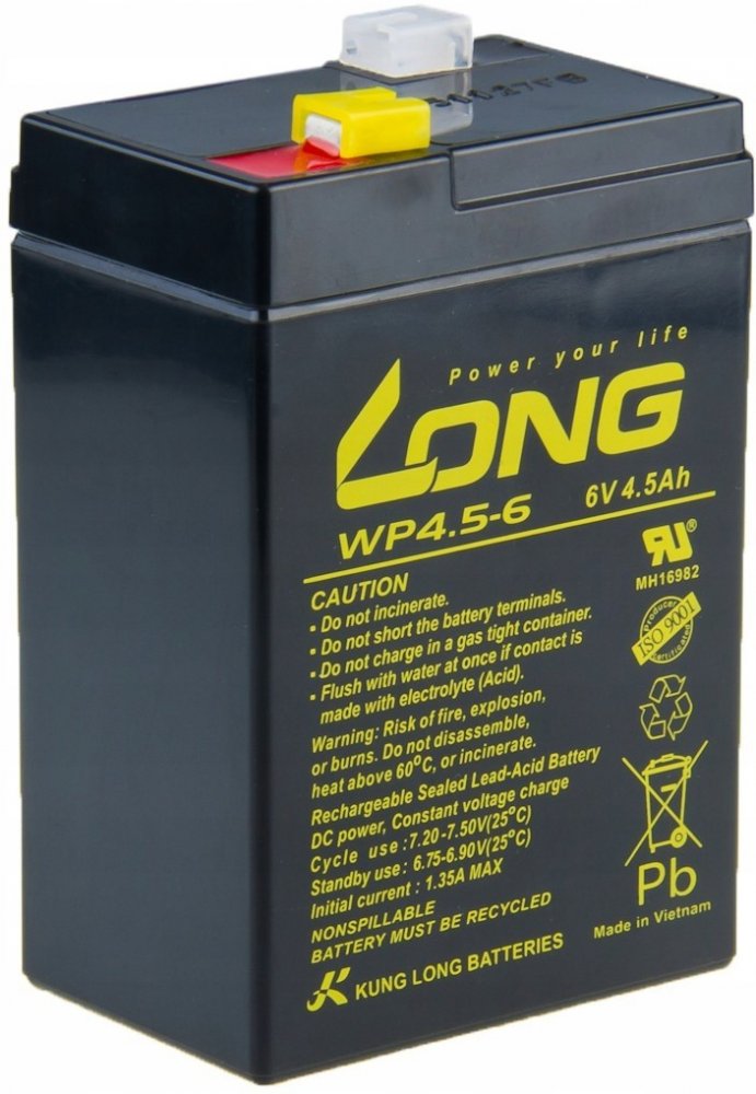 Označenie akumulátora a jeho ekvivalentov: WP4,5-6, CJ6-4.5, GP645, LC-R064R5P