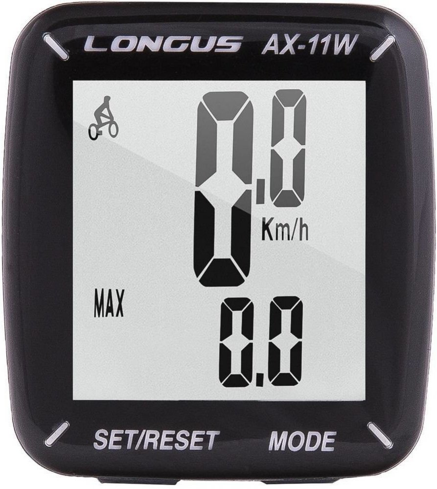 Bezdrátový počítač AX-11W nabízí 11 nejpoužívanějších funkcí pro běžného cyklistu a ovládá se jedním tlačítkem. FUNKCE: Aktuální rychlost, Maximální rychlost, Průměrná rychlost, Porovnávání rychlosti, Ujetá vzdálenost, Počítač kilometrů, Čas jízdy, Otáčky kola, Hodiny 12/24, Spotřeba kalorií, Automatické přepínání hodnot, Automatické zapnutí Počítač se ovládá dvěma tlačítky. Úchyt počítače umožňuje upevnění na řídítka i na představec. Magnet je vhodný pro upevnění i na ploché špice. Montáž počítače je jednoduchá, bez použití nářadí, kromě nástroje na zkracování vázacích pásek. Počítač používá baterii typu CR2032, snímač 2 x LR44. Váha: 45g se snímačem