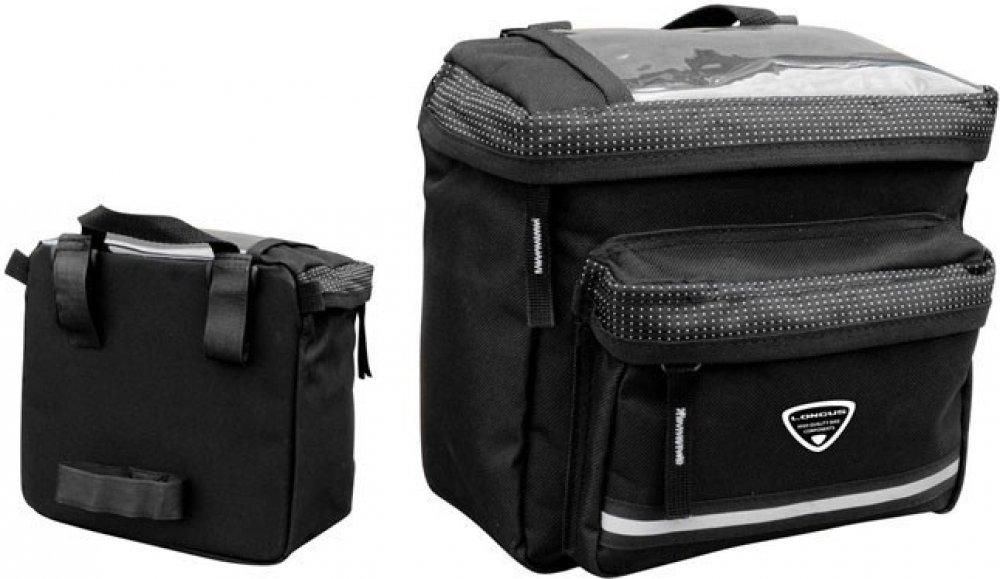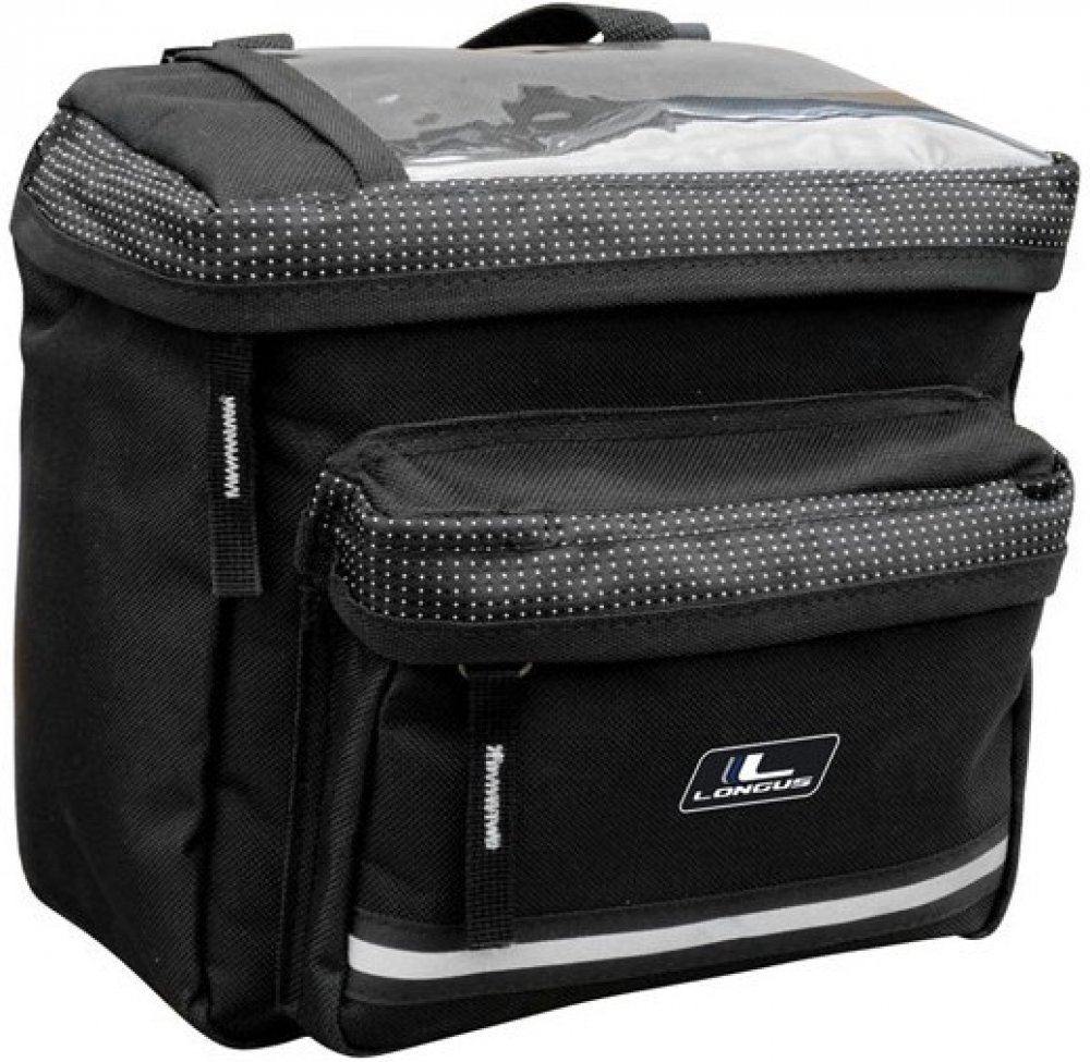 Středně velká kapsa na řídítka s vyztuženou zadní částí a průhledným prostorem na mapu v horní části, aby jste měli cíl jízdy vždy pod kontrolou. Velký vnitřní objem a přídavná přední kapsa umožní uložit velké množství potřebných věcí na dlouhé výlety. Reflexní prvky zvyšují bezpečnost za snížené viditelnosti. Upnutí na řídítka zabezpečují dostatečně dlouhé Velcro pásky, které umožňují jednoduchou a rychlou instalaci nebo demontáž kapsičky. Kapsička může sloužit i jako příruční taška, díky rukojeti v horní části. Přívěsky na jezdcích zipů usnadňují jejich zapínání. Uvnitř najdete přihrádku na doklady a přívěsek na klíče. Kapsička je vyrobena z odolného a houževnatého polyesteru 600D, který zajišťuje dlouhou životnost i při častém používání. Rozměr: 20 x 10 x 19 cm Objem cca 3,9L Hmotnost: 280g