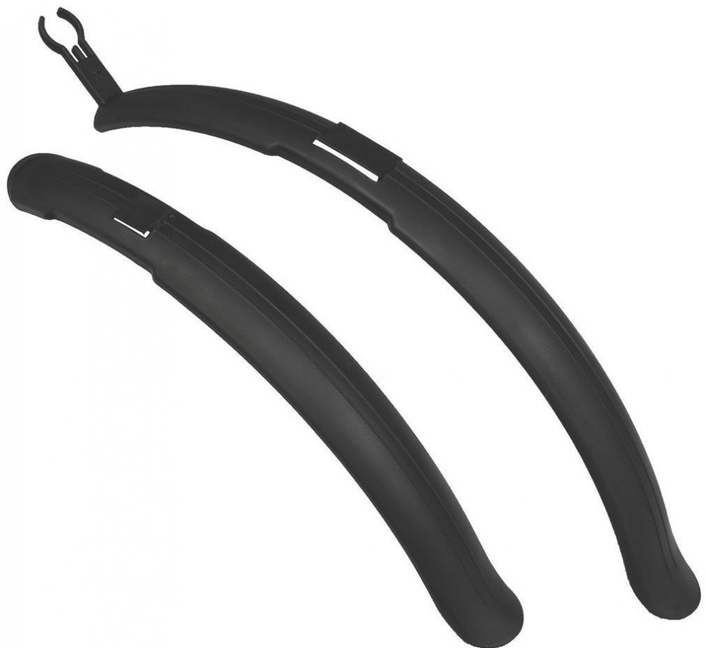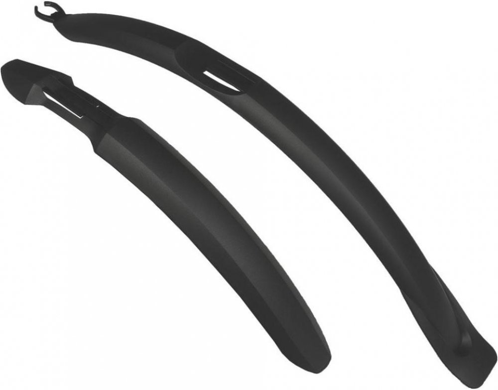 Přední a zadní blatníky jsou vyrobeny z polypropylenu (PP) a jsou vhodné pro 26" kola. Blatníky s elegantním designem jsou vhodné pro různé typy brzd. Blatníky jsou odolné a pevné, takže jsou vhodné zejména pro kola MTB. Blatníky jsou dodávány s ocelovými úchyty, které po nasazení umožňují snadnou montáž nebo demontáž blatníku.