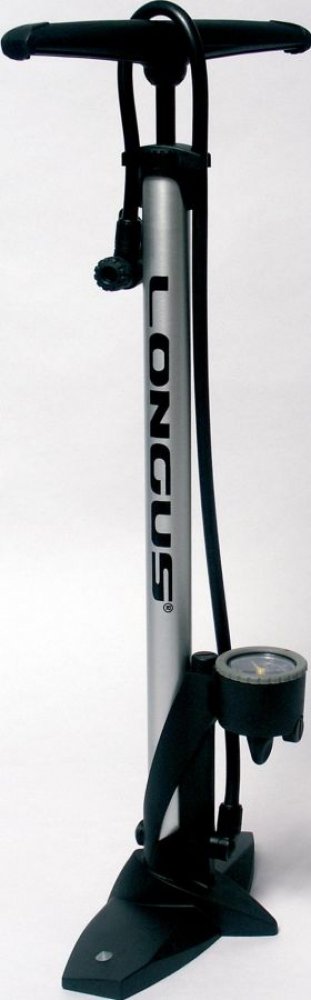 Nožní dílenská pumpa na kolo Longus Step s hliníkovým tělem a plastovým podstavcem. Pumpa díky univerzální hlavici umožňuje použití všech typů ventilků, galuskového, auto a dunlop.