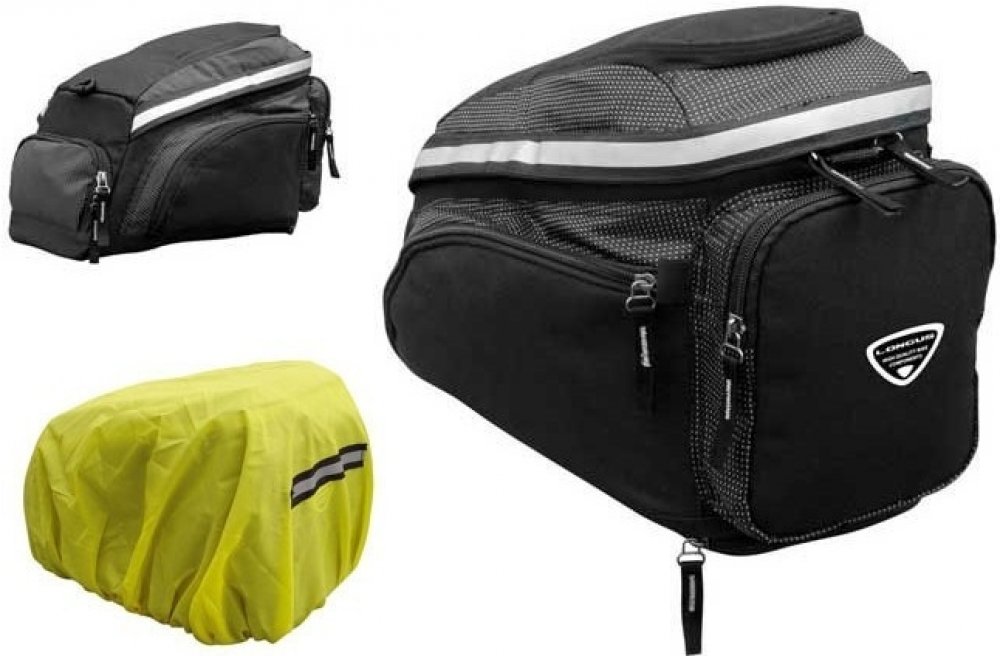 Objemná kapsa na nosič se spoustou postranních kapes a přihrádek. Horní víko po otevření umožňuje pohodlný přístup do hlavního prostoru kapsy a umožňuje snadnou manipulaci is většími předměty. Vnitřní prostor vybaven dvěma síťovými kapsami, jedna na boční stěně a druhá na horním víku. K dispozici je také zadní kapsa na uložení drobností nebo dokladů. Vnitřní prostor je měkký a skvěle ochrání i křehké předměty jako například fotoaparát. Snadno přístupná kapsa na horním víku, postranní kapsy a zadní kapsa s přívěskem na klíče slouží k uschování drobností, které mají být přístupné okamžitě, bez nutnosti hledání v hlavním prostoru. Přívěsky na běžcích zipů výrazně usnadňuje časté otevírání a zavírání. Uchycení kapsičky na nosič je zajištěno třemi dostatečně dlouhými Velcro pásky. Reflexní pásek vedený kolem horní části zvyšuje boční viditelnost za zhoršených světelných podmínek. Kapsička je vyrobena z odolného a houževnatého Polyesteru 600D, který zajišťuje dlouhou životnost i při častém používání. Součástí kapsy je potah proti dešti v neonové žluté barvě s reflexním pasem. Rozměr: 33x16,5x17cm Objem: cca 9,3L Váha: 850g