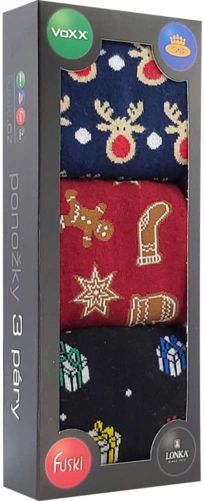Unisex společenské "trendy" obrázkové ponožky z česané bavlny s elastanem, řetízkovaná špice, v dárkovém balení.