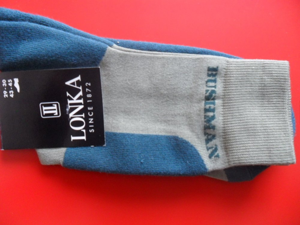 DETREKBUSH- značkové pánské ponožky českého výrobce, z bavlny se zesílenou nášlapnou částí s nápisem BUSHMAN v horní lýtkové části ponožky, s šitou špicí,převěšený lem.