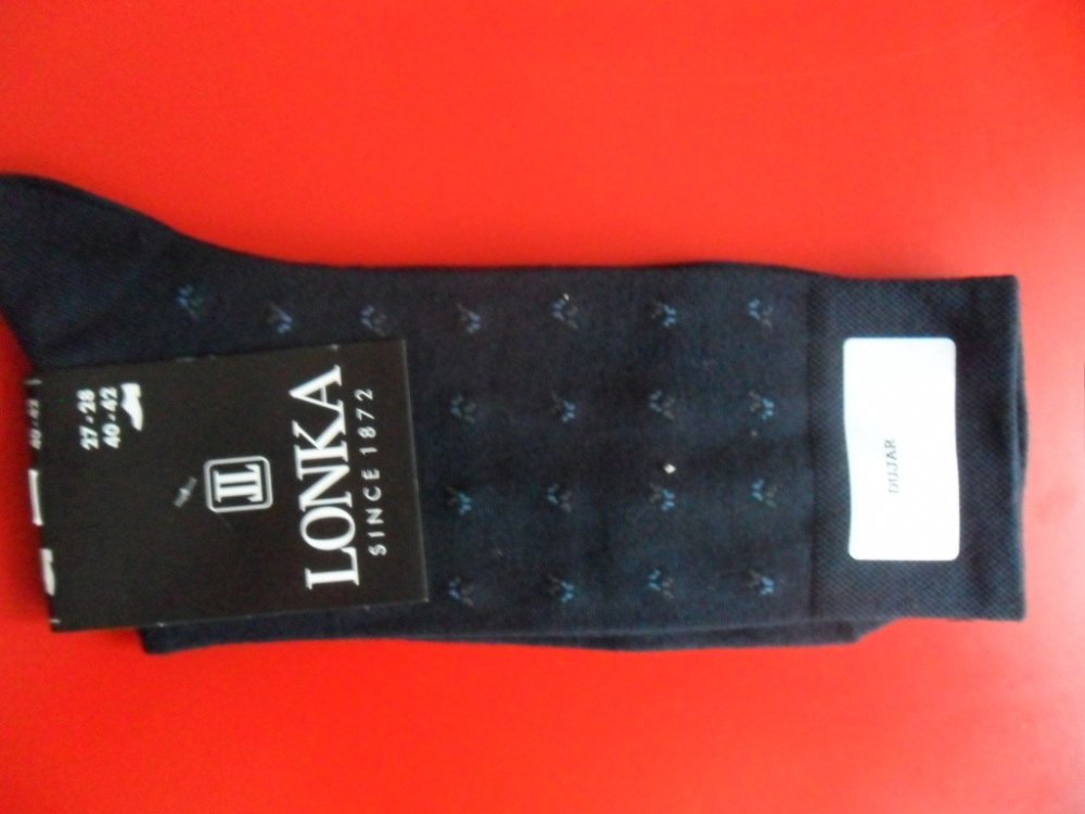 DUJAR- luxusní pánské ponožky českého výrobce z mercerované bavlny , s převěšeným lemem a šitou špicí.Jemný vzoreček po celé ploše ponožky.Mercerací se zvětší pevnost, plnost a životnost tkaniny a vlákno získá trvalý hedvábný lesk. Elegantní a velmi příjemné při nošení.