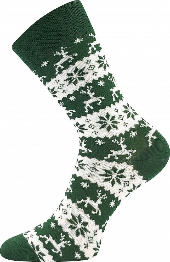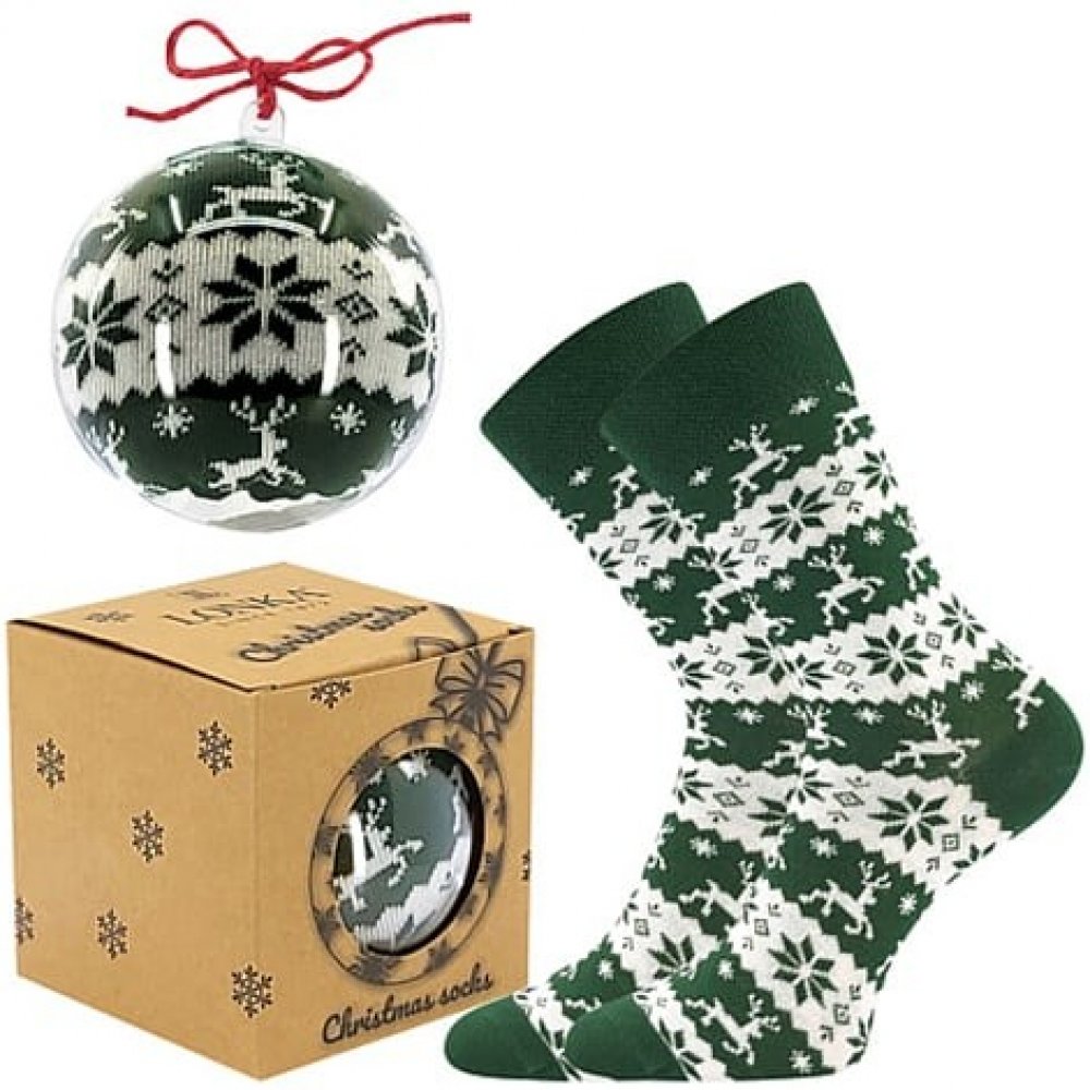 Vánoční ponožky Lonka ELFI jsou jsou dětské, dámské i pánské vánoční ponožky, které jsou vhodné jako originální dárek pod stromeček. Unisex ponožky se zimním motivem vloček a sobů jsou prostě kouzelné! Klasický norský design naladí tu správnou zimní atmosféru. Vtipné ponožky jsme zabalili do průhledné koule a dárkové krabičky, můžete je tedy pověsit rovnou na stromeček jako ozdobu, nebo je darovat...