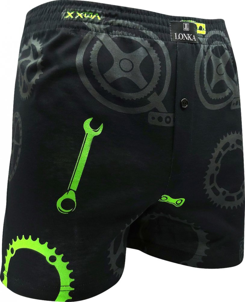 Pánské bavlněné trenýrky Lonka® KARLOS IMAGE jsou trendy trenky z digitálně potištěného 100% bavlněného úpletu. Takový materiál neosahuje žádné další příměsi, je čistě přírodní, a proto přátelský k pokožce. Bavlněný úplet je pružný, střih je volný, takže trenýrky perfektně padnou každé postavě. Guma je skrytá v pase a nedotýká se tak pokožky. Nosit je můžete bez obav po celý den. Výběr motivů pánských trenýrek je velký, určitě si vyberete z mnoha vtipných obrázků, navíc mají knoflíček na falešném poklopci. Vtipné a originální obrázky jsou to pravé pro „hravé já“ každého muže. Pánské trenýrky jsou dostupné i v nadměrné velikosti.