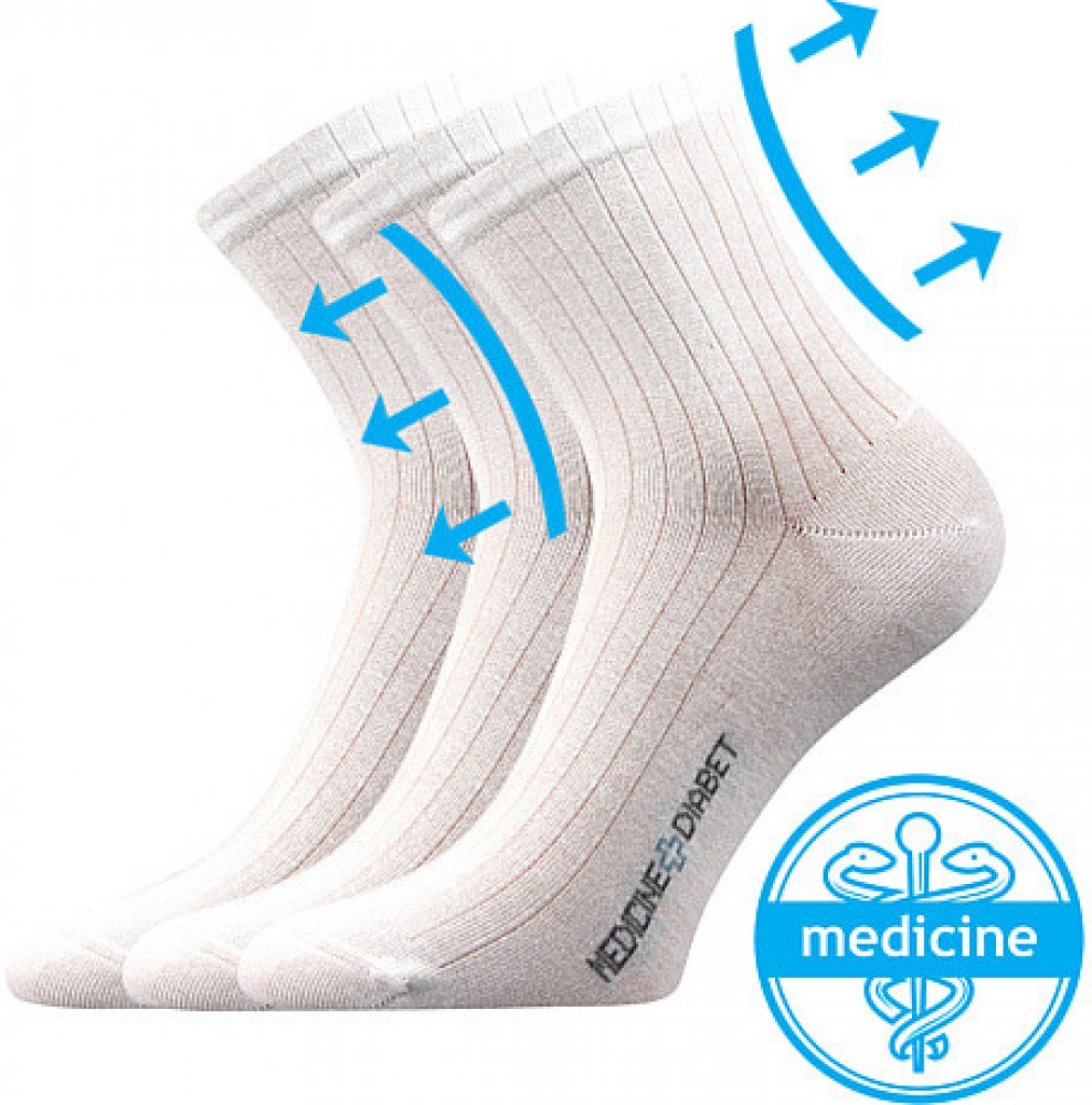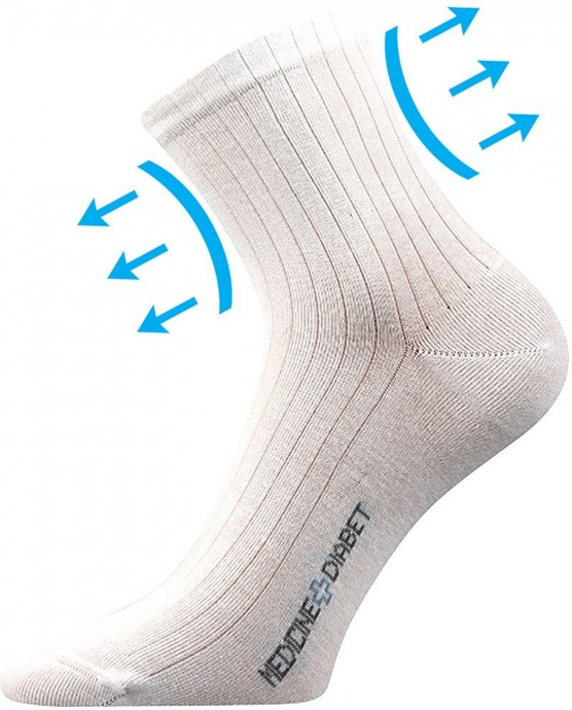 Medicine ponožky Lonka® DEMEDIK jsou ideální volbou pro oteklé nohy. Středně vysoké ponožky se speciálním jemným nestahujícím lemem, který neškrtí a nezařezává se do pokožky. Bavlněné ponožky jsou příjemné na omak i nošení, výborně pohlcují vlhkost. Kvalitní ponožky jsou upletené na 200 jehlách, jsou proto velmi jemné a hladké. Špice je uzavřena náročnějším řetízkováním, proto je spoj dokonale hla...