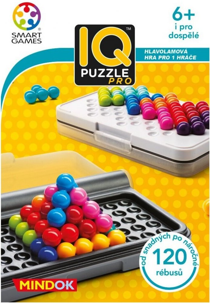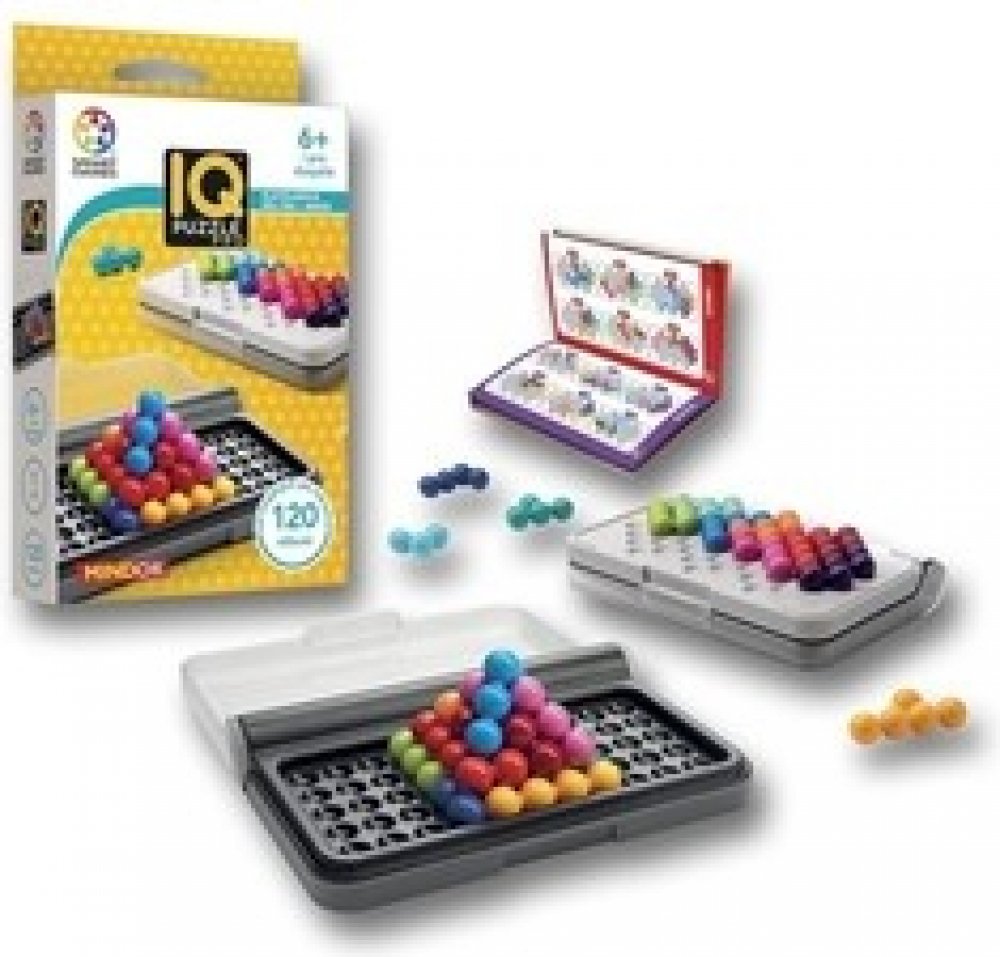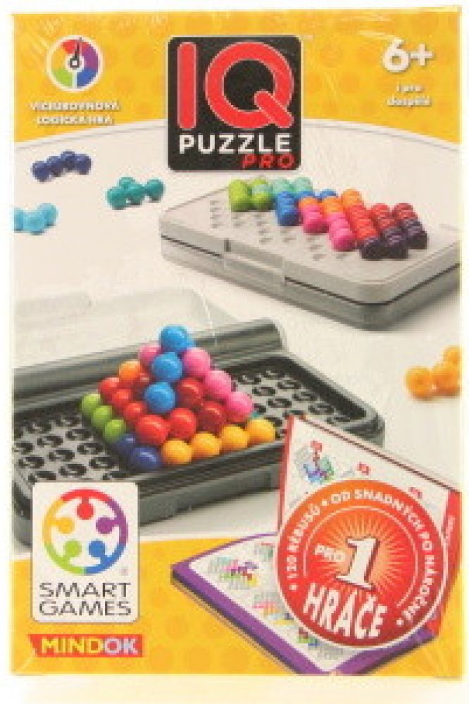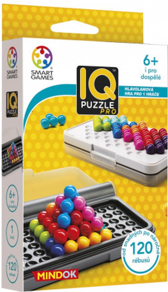 Otestujte a posilte své IQ s touto skvělou cestovní hrou! Logická hra z řady SMART games pro jednoho hráče od 6 let IQ Puzzle Pro obsahuje 120 rébusů ve třech herních módech, ve 2D i 3D. Horní část krabičky obsahuje jednu herní desku pro 2D rébusy a speciální desku pro 3D rébusy - pyramidu. Spodní část krabičky přináší další tvar desky pro 2D rébusy. Cílem je poskládat jednotlivé dílky složené z k...