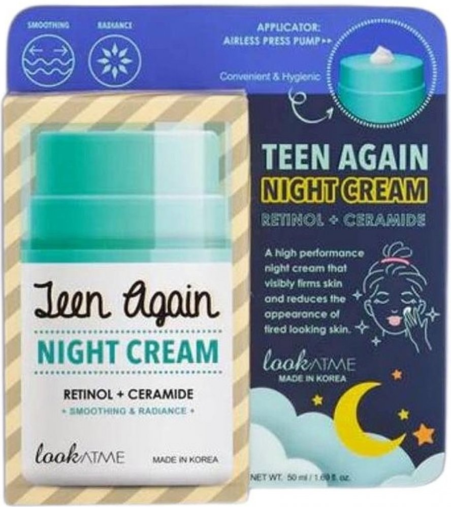 Look At Me Teen Again Night Cream 50 ml – hydratační noční krém je bohatý regenerační krém určený k obnově a výživě pleti během spánku. Obsahuje peptidy, ceramidy, niacinamid a adaptogeny (Panax ginseng či reishi), které podporují regeneraci, obnovu bariéry a posílení elasticity. Krém kombinuje intenzivní hydrataci s revitalizací, přičemž nezanechává těžký nebo mastný pocit – perfektní doplněk noční péče pro unavenou, suchou nebo zralejší pleť.VlastnostiKrémová, výživná textura s příjemným vstřebávánímObsahuje peptidy (např. Acetyl Hexapeptide‑8), podporující obnovuCeramidy pro obnovu kožní bariéry a ochranu proti dehydrataciNiacinamid pro sjednocení tónu a zklidnění pletiObsahuje adaptogeny jako Panax ginseng a reishi, podporující regeneraciKlíčové benefityIntenzivně hydratuje a výživuje během nociPodporuje obnovu pleti a posiluje její přirozenou obranyschopnostVyhlazuje jemné linky a zjemňuje texturu pokožkyZklidňuje podráždění a sjednocuje tón pletiPoskytuje regenerující efekt bez těžkého, mastného pocituPoužitíPoužívejte večer na důkladně očištěnou a tonizovanou pleťNaneste krém na obličej a krk a jemně vmasírujte do úplného vstřebáníV případě potřeby doplňte sérum před aplikací krémuPoužívejte pravidelně každou noc pro maximální výsledkyRáno pokračujte s lehkým hydratačním krémem a SPF ochranou