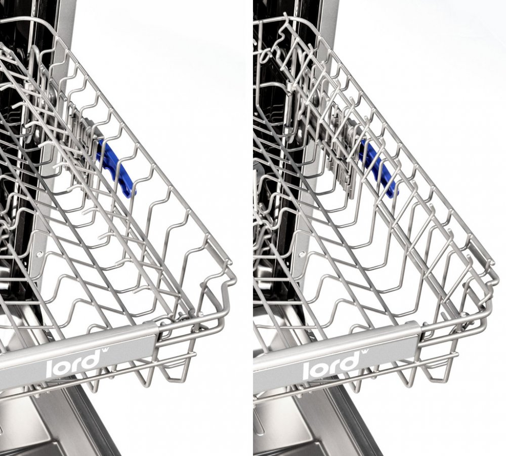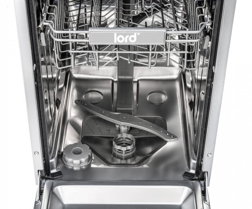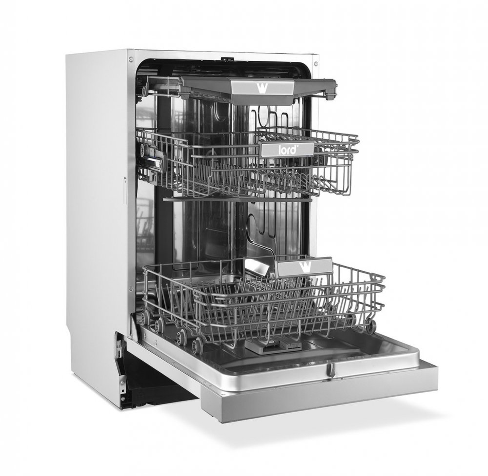 Vestavná myčka nádobí LORD D6 o šířce 45cm se řadí do energetické třídy C. Potěší vás i prodloužená pětiletá záruka. Myčka dokáže pojmout celkem 10 jídelních sad. Její vnitřní prostor je uspořádán tak, aby se každý kus nádobí ze sady dokonale umyl a usušil. Nádobí se dá rozdělit do celkem 3 úrovní. Horní koš je výškově nastavitelný a to i při jeho plném naplnění.