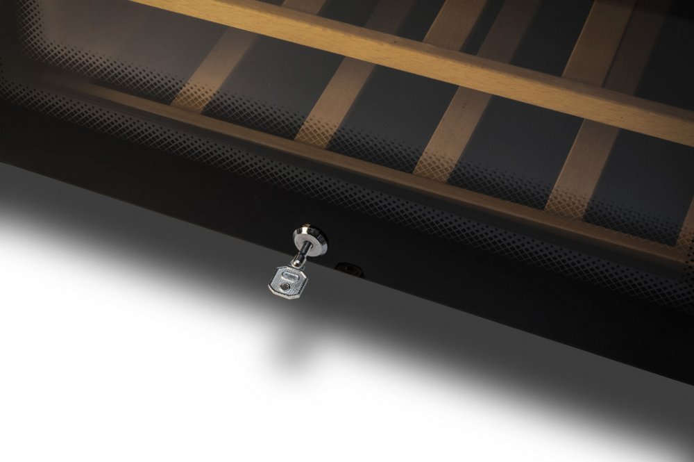 Uvnitř se nachází sedm dřevěných polic, kdy spodní dvě jsou spojené a mají širší rozestupy žebrování pro možnost uložení různých typů lahví. Na výběr té pravé lahve vám posvítí vnitřní LED osvětlení. Díky jednoduchém...