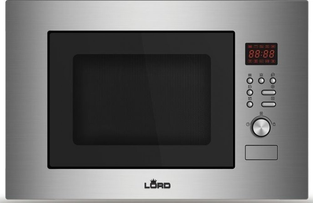 Vestavná mikrovlnná trouba LORD M5 se díky svému modernímu designu z nerezové oceli a stylovým skleněným prvkům stane elegantní součástí každé kuchyně.
