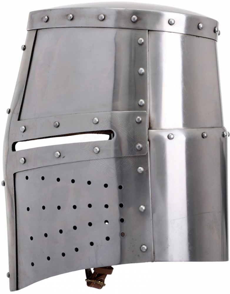 Nejranější formy kbelcových přileb od 12. století se ve 13. století ukázaly jako dobrý tah: ploché horní části přileb z konce 12. století v kombinaci se znovuzavedením obličejové masky byly poměrně jednoduché na výrobu a poskytovaly vynikající ochranu. Během počátku 13. století byly tyto obličejové ochrany rozšířeny, takže nakonec další pláty pokrývaly zadní část krku, nakonec sahaly až k ramenům a obepínaly tak celou hlavu. Kbelcová přilba se běžně nosila přes kuklu a větší modely i kovovu lebku, která svému nositeli poskytovala dříve nepředstavitelnou úroveň ochrany. Samozřejmě nevýhodou přidané ochrany bylo, že viditelnost a snadné dýchání byly podstatně horší než u starých otevřených přileb. Pevný plášť byl sice proražen velntilačníi otvory, dýchání pomáhaly i štěrbiny hledí.