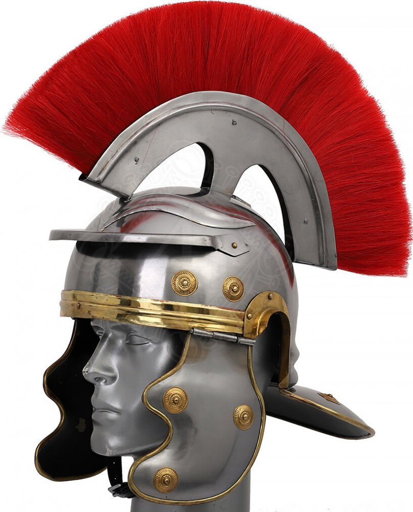 Příčný chochol (Crista Transversa): Nepřehlédnutelný červený chochol, usazený napříč vrcholem helmy, je charakteristickým znakem centuriona. Je vyroben z umělých žíní a upevněn v kovovém držáku.