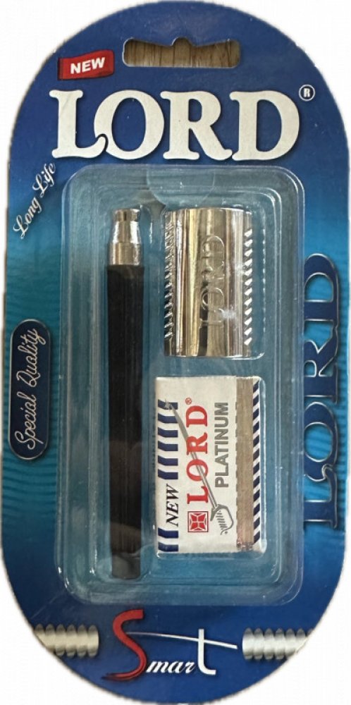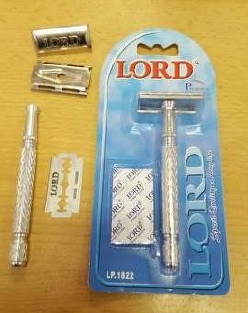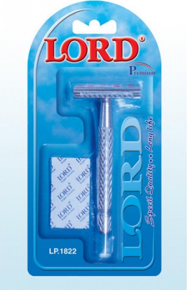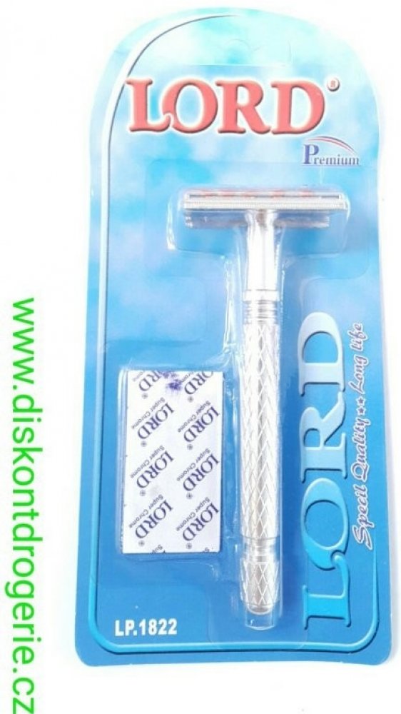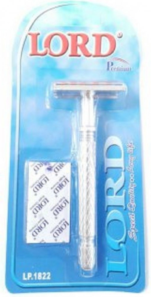 Klasický kovový holící strojek na plátkové žiletky. Součástí balení je jedna žiletka.