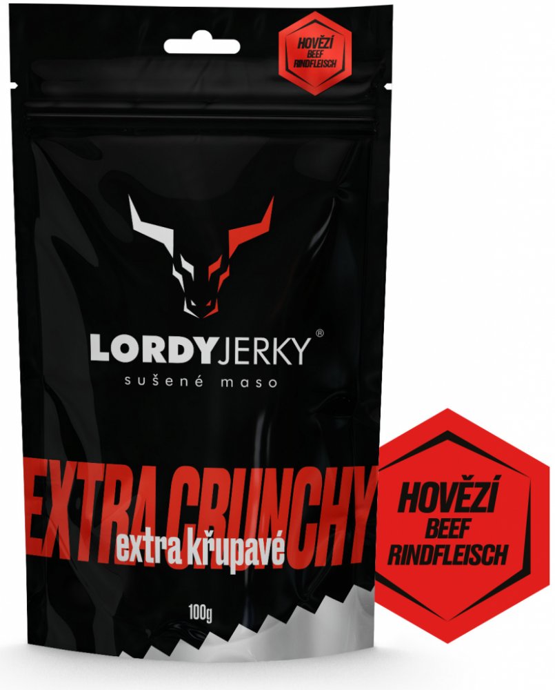 Dokřupava sušené, hovězí, výběrové maso se vyznačuje nevtíravou avšak zapamatovatelnou chutí. S každým křupnutím prožijete koncert, který se navždy zapíše do vašich chuťových pohárků. LORDYjerky totiž vysouší na maximální možnou míru. V křupavém masíčku nenajdete žádný lepek, glutamáty, barviva, cukr ani konzervační látky. Najdete v něm ale vůni kvalitního českého česneku, kvalitní sojové omáčky T...