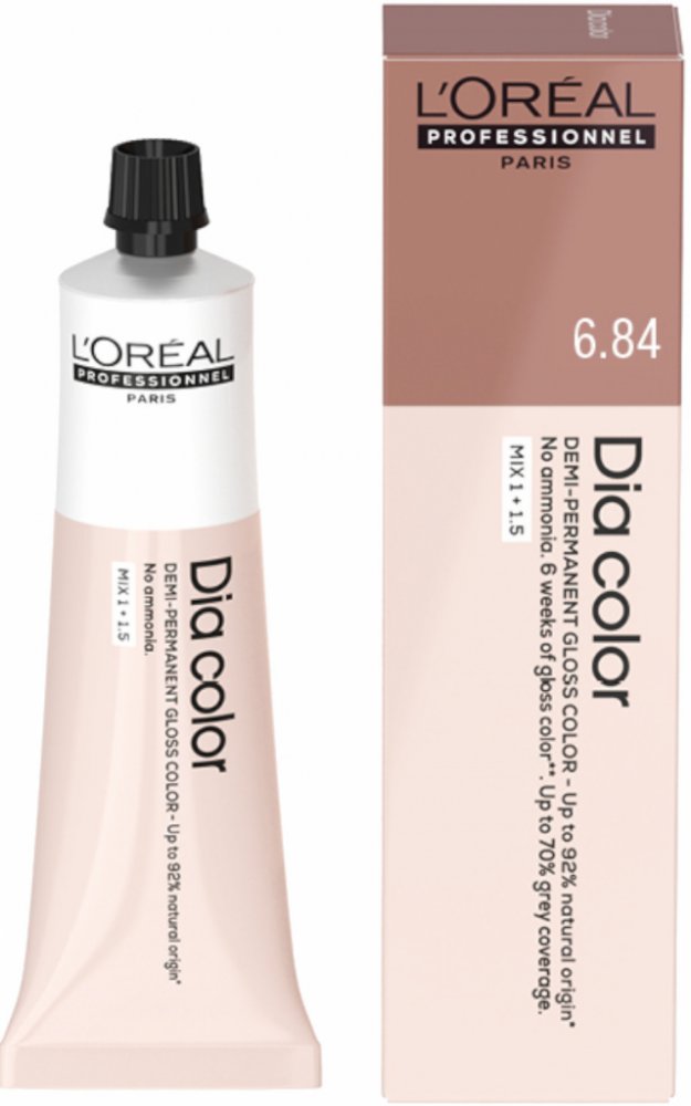 Profesionální přeliv na vlasy bez amoniaku Loréal Professionnel Dia color propojuje přírodu a technologii Melanin Gap Filler s fantastickým výsledkem. Nabízí až 92 % složení přírodního původu, včetně hloubkově pečujících složek, jako je bambucké máslo, které vlasům během barvení poskytuje maximální výživu a podporuje jejich lesk. Propanediol, glycerin a kyselina hyaluronová se starají o hloubkovou hydrataci vlasových vláken. V průběhu času ubývá melaninu z vlasového vlákna, proto jsou vlasy matné a bílé. Technologie Melanin Gap Filler perfektně napodobuje přírodní barvu a polohu melaninu ve vlasovém vláknu, aby dokonale vyplnila mezery po ztraceném melaninu. Dia color dodává přirozeně matným vlasům 3x větší lesk, který vydrží až 6 týdnů. Je ideální pro první barvení přírodních vlasů, vytvoření efektu tón v tónu, ale také pro až 70% přirozené krytí prvních bílých vlasů. Krémová textura umožňuje snadné míchání, aplikaci i oplachování. Módní mokka odstín .8 je velmi harmonický a přirozený, ani příliš studený, ani příliš teplý.Oxidační krém není součástí balení, je nutné ho zakoupit samostatně!Balení: 60 mlOdstín: 6.8 tmavá blond mokkaPoměr míchání: 1:1,5 (1 díl barvy + 1,5 dílu oxidačního krému)Doba působení: 20 minutAktivní látky a technologie:Technologie Melanin Gap Filler - napodobuje přírodní barvu a polohu melaninu ve vlasovém vláknu, aby dokonale vyplnila mezery po ztraceném melaninu, tím vlasům dodává oživení a leskBambucké máslo - poskytuje vlasům maximální výživu, hydrataci a podporuje jejich leskPropanediol - složka získávaná z obnovitelných rostlinných olejů nebo kukuřice, dodává vlasům hydrataciGlycerin - přírodní složka používaná pro dodání hydratace vlasům a vyhlazení vlasového vláknaKyselina hyaluronová - hydratuje suché a poškozené vlasy, chrání je před další ztrátou hydratace, brání lámání a třepení vlasů a dodává leskVlastnosti:- přeliv na vlasy bez amoniaku- až 92 % přírodního složení- napodobuje přírodní barvu- vyplňuje mezery po ztraceném melaninu- dodává vlasům 3x větší lesk až na 6 týdnů- ideální pro první barvení přírodních vlasů- vytváří efekt tón v tónu- až 70% krytí bílých vlasů- krémová texturaVýběr oxidačního krému:1,8 % (6 vol.) - pro ztmavení o 1 výšku tónu, barvení tón v tónu a světlé výšky tónu, jemný barevný výsledek2,7 % (9 vol.) - pro barvení tón v tónu, ztmavení, standardní barevný výsledek4,5 % (15 vol.) - pro zesvětlení o 1 výšku tónu, krytí bílých vlasů, intenzivní barevný výsledekPříprava a míchání:1. V případě krytí bílých vlasů je nutné použít přírodní odstín nebo jej přimíchat k odleskovému odstínu. Pro krytí 30-50 % bílých vlasů použijte přírodní odstín nebo smíchejte 1/4 přírodního odstínu (např. 6) a 3/4 odleskového odstínu (např. 6.82). Pokud budete krýt 50-70 % bílých vlasů, použijte přírodní odstín, nebo smíchejte 1/2 přírodního odstínu a 1/2 odleskového odstínu.2. V nekovové misce nebo aplikátoru smíchejte barvu a vybraný oxidační krém, dokud nevznikne homogenní směs. Pro precizní aplikaci zvolte misku a štětec, pro rychlou aplikaci aplikátor.První aplikace - přírodní vlasy:1. Naneste směs štětcem nebo aplikátorem na suché vlasy, dbejte na prosycení každého pramene.2. Nechte působit 20 minut, dobu působení začněte měřit až po dokončení aplikace.3. Jemně emulgujte.4. Důkladně opláchněte a umyjte vlasy šamponem Metal Detox.Další aplikace - dobarvení odrostů:1. Naneste směs štětcem nebo aplikátorem na odrosty a začněte počítat dobu působení 20 minut.2. Pokud je barva vlasů velmi vymytá, ihned aplikujte směs i do délek. 3. Pokud je barva vlasů středně vymytá, aplikujte směs do délek 10 minut před koncem doby působení.4. Pokud je barva vlasů mírně vymytá nebo chcete oživit odlesk, aplikujte směs do délek 5 minut před koncem doby působení. 5. Po uplynutí 20 minut od nanesení směsi na odrosty vlasy jemně emulgujte.6. Důkladně opláchněte a umyjte vlasy šamponem Metal Detox.Tip: Použijte odstín Clear pro zjemnění jakéhokoliv odstínu nebo samostatně pro dodání zářivého lesku Vašim vlasům!Upozornění:1. Jedná se o profesionální přeliv na vlasy, který je určený pro použití v kadeřnických salonech.2. Přeliv může způsobit alergické reakce. Dočasné tetování černou hennou může riziko alergie zvýšit. Nebarvěte si vlasy, pokud máte vyrážku na obličeji nebo citlivou, podrážděnou a poškozenou pokožku hlavy, pokud jste již v minulosti zaznamenali alergickou reakci po barvení vlasů nebo pokud jste v minulosti zaznamenali reakci na dočasné tetování černou hennou. Před barvením proveďte test citlivosti.3. Výrobek není určen k používání pro osoby mladší 16 let.4. Použijte pro aplikaci vhodné ochranné rukavice.5. Zamezte styku s očima, při zasažení očí je okamžitě důkladně vypláchněte vodou.6. Nepoužívejte přeliv k barvení řas a obočí.