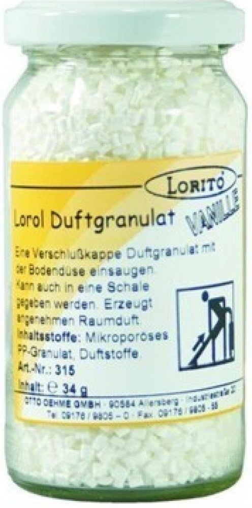 Lorol Vanilka používejte při výměně filtračních sáčků. Postačí nasát hubicí vysavače malé množství (jedno víčko 3-5g) vonných granulí a v průběhu vysávání bude uvolňována vůně do prostoru proudícím vzduchem vysavače.