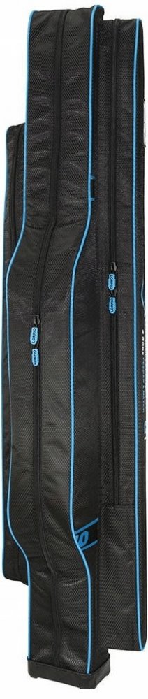 Díky speciálně navržené vnitřní přepážce pojme pouzdro 3 ozbrojené pruty s navijáky a přitom zachovává šířku standardního pouzdra pro 2 pruty. Vnitřní pěnové přepážky a suché zipy chrání nejen pruty a navijáky, ale také vlasec a sadu s plovákem nebo nástražným košem. Pouzdro má navíc dvě vnější komory pro příslušenství. Tvrdé, snadno čistitelné dno chrání před vlhkostí, když pokládáte kryt svisle.