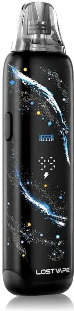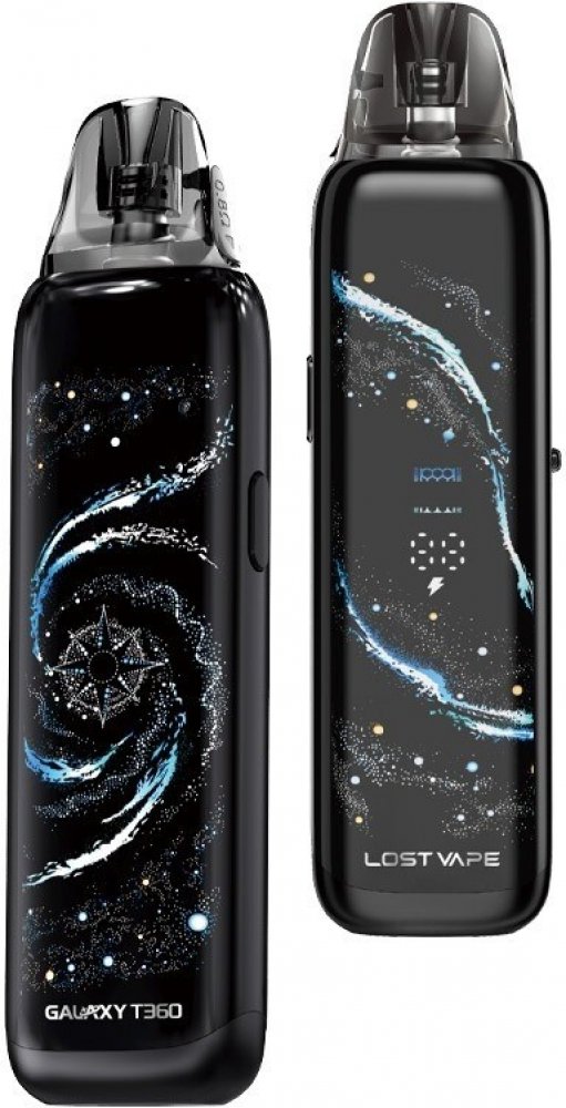 Lost Vape Galaxy S360 zaujme promyšlenou konstrukcí, která kombinuje moderní design s praktickými funkcemi. Dominantním prvkem je 360° dynamická obrazovka s galaxickým efektem, viditelná z každého úhlu, která podtrhuje prémiový vzhled zařízení a zároveň informuje o jeho provozu.