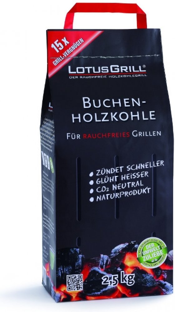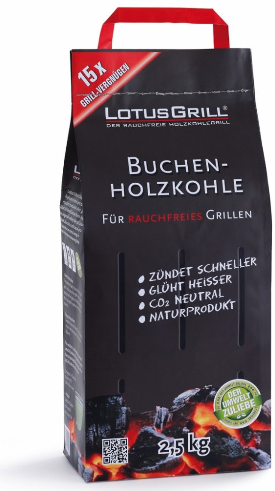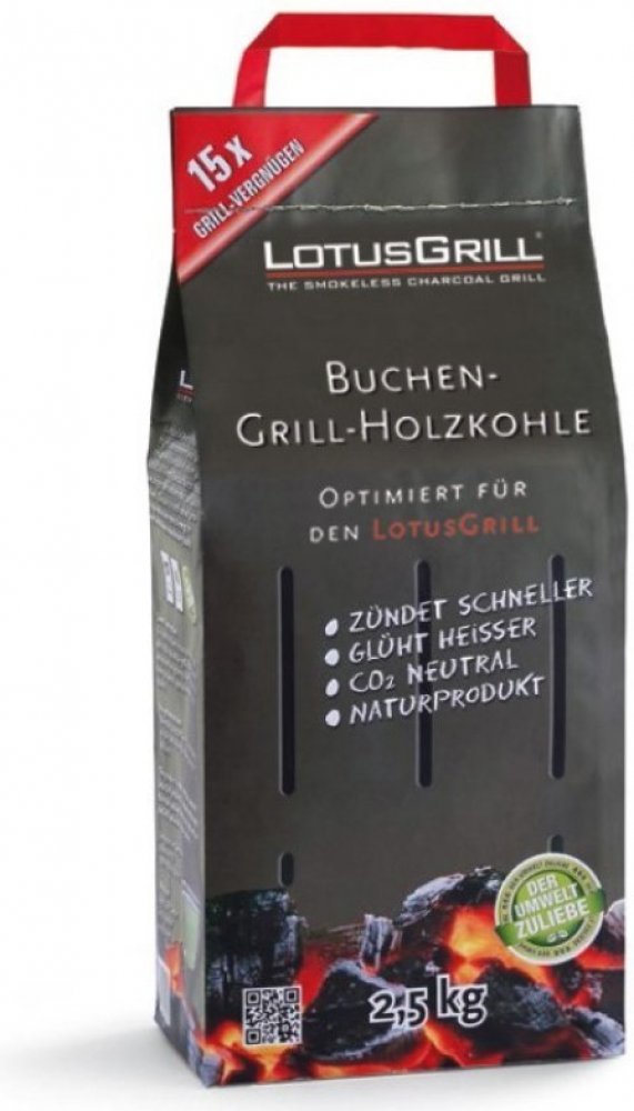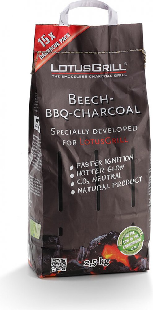 Při výrobě dřevěného uhlí LotusGrill jsou splňovány přísné požadavky na kvalitu a ekologické zpracování. Surový materiál pochází z lesů oceněných FSC certifikátem, který dokládá nejvyšší standart šetrnosti lesního hospodářství. Uhlí je 100% přírodní bez pojiv a dalších chemikálií, které jsou používané při výrobě briket. Neobsahuje prach ani nečistoty, které bývají u běžného dřevěného uhlí. A tudíž je zajištěna téměř nulová tvorba dýmu.