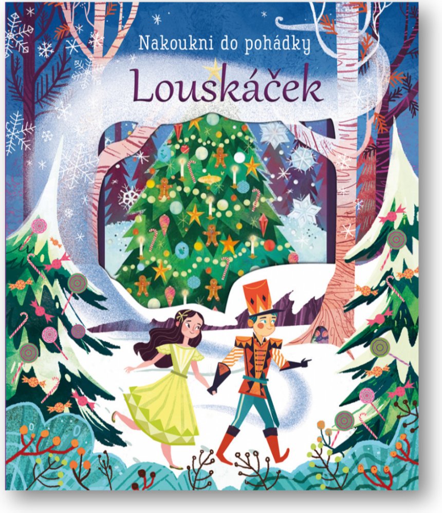 Louskáček, Klářin nejmilejší dárek, ožije. Stačí jedna kouzelná noc a začnou se dít zázraky! Nakoukni do pohádky skrz stránky a prožij pohádkové dobrodružství.Vánoce jsou pro Klárku časem kouzel a zázraků. Když najde pod stromečkem dřevěného panáčka, který dovede louskat ořechy, je nadšená. Pak její Louskáček ožije, Klárka se zmenší a společně zažijí pohádkové dobrodružství, ve kterém nechybí strašlivý Myší král ani hodná Cukrátková víla z marcipánového paláce. Vánoční příběh podle E. T. A. Hoffmanna je v tomto leporelu oživen díky stránkám s výřezy a průhledy do dalších scén. Dětští čtenáři tak mohou doslova nakouknout do pohádky a stát se aktivními aktéry příběhu. Poetické ilustrace dokonale podrthují tajuplnou atmosféru Vánoc. Krásné čtení (nejen) na dobrou noc plné fantazie.Leporelo s okénky, 14 str., 160 x 190 mm