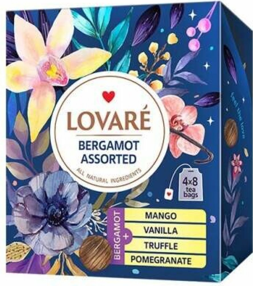Objevte jedinečnou kolekci aromatických čajů LOVARÉ Bergamot Assorted, která spojuje výraznou chuť bergamotu s dalšími lahodnými ovocnými a sladkými tóny. Každé balení obsahuje 4 druhy čajů po 8 sáčcích, takže si můžete vychutnat chuť, na kterou máte právě náladu.