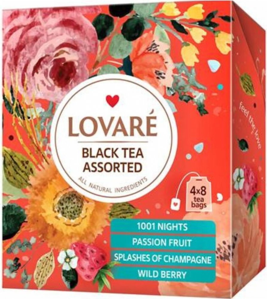 Lovaré Black Tea Assorted je ideální volbou. Obsahuje čtyři druhy výběrového černého (a černozeleného) čaje v samostatně balených sáčcích – po 8 kusech od každé příchutě: