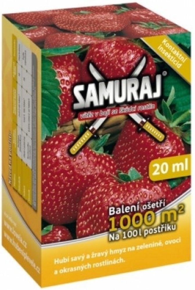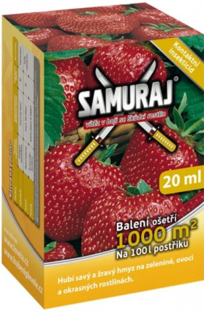 SAMURAJ® je širokospektrální insekticid na bázi syntetického pyrethroidu ve formě stabilní suspenze kapsulí v kapalině k hubení savého a žravého hmyzu na zelenině, vinné révě, ovocných dřevinách, okrasných rostlinách a lesních porostech. účinnou látkou je lambda-cyhalothrin 50 g/l
