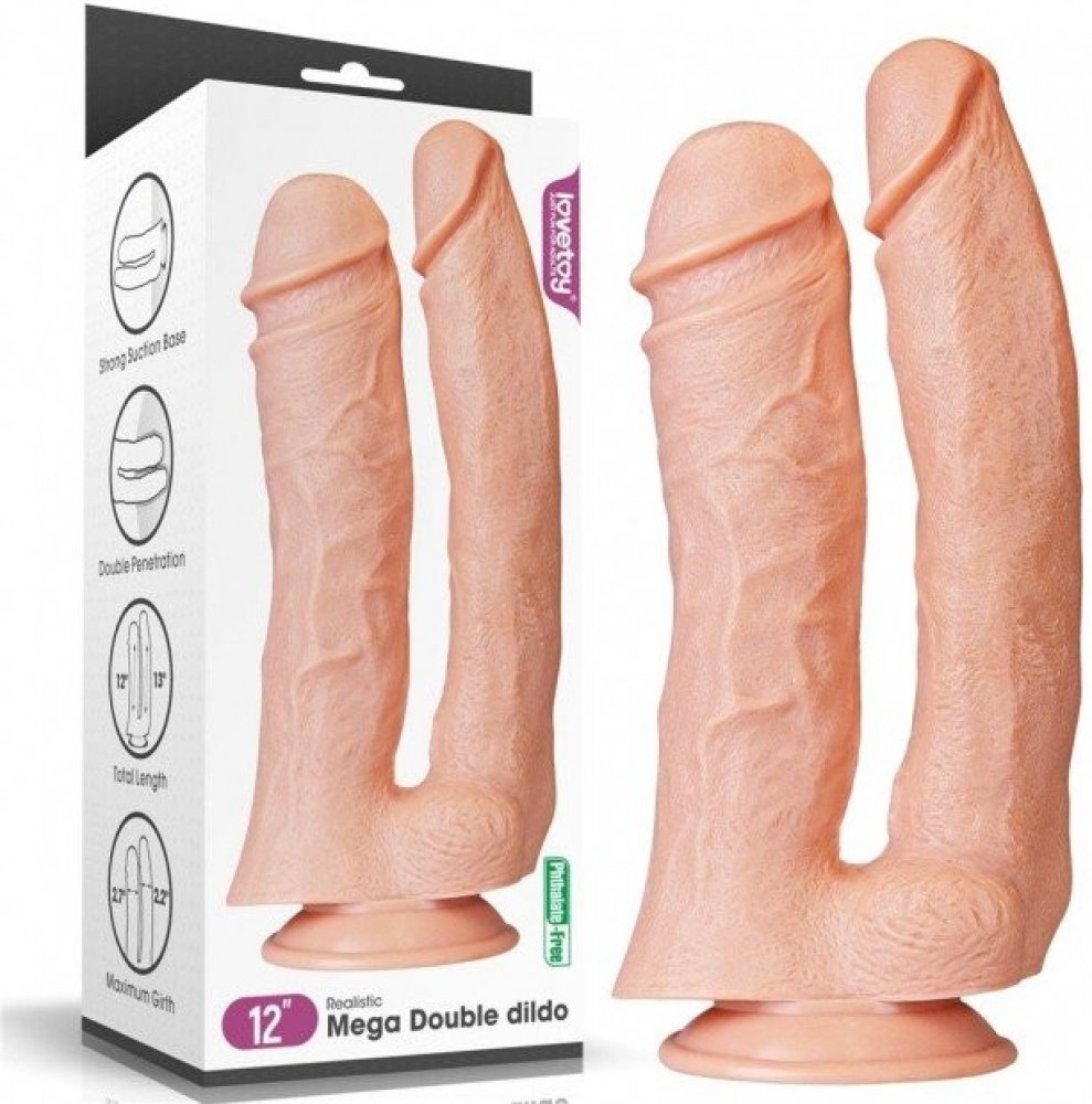 LoveToy 12″ Realistic Mega Double Dildo, tělové dildo s přísavkou 33 x 5,6 / 6,6 cm