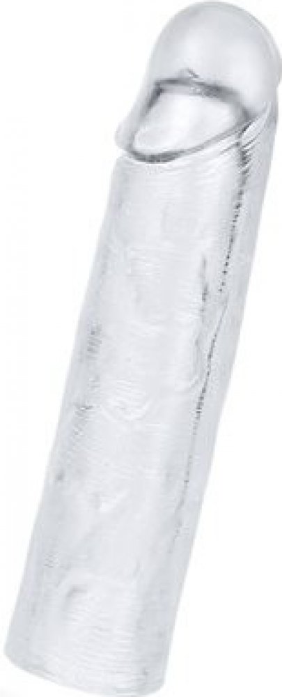 Transparentní návlek na penis. Návlek je s tvarovaným žaludem a povrch má jemně žilkovaný. Můžete ho použít jak na penis, tak na hladký vibrátor. Návlek váš penis zvětší o 1,2 cm v průměru a o 2 cm jej prodlouží.