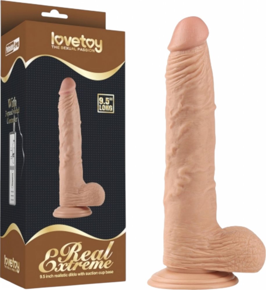 Extra vzrušení od Real Extreme milence díky LoveToy. Proč si to zamiluješ? Flexibilní materiál, který je na dotek přirozenýBez ftalátů a latexu - vhodné i pro citlivějšíDetailní provedení - realistické žilkování, barva, žalud i varlataPevný a stabilní, zároveň měkký na dotek, skoro jako opravdový!Pevná přísavka - drží na většině hladkých povrchů (lakované dřevo, dlaždice, sklo atd.)Lze použít i s připínacím prádlem (není součástí balení)100% voděodolný - bez elektroniky, takže si ho užiješ ve vaně i sprše, snadno se čistíMateriál z PVC, takže můžeš použít i hybridní nebo silikonové lubrikanty, které materiál nepoškodíJak používat? Díky přísavce připevni tohoto realistického miláčka na dlaždičky, sklo nebo lakované dřevo a pak už je jen na tobě, jestli si na něj nasedneš zezadu, v podřepu nebo si na něj rovnou sedneš - ruce ti zůstanou volné! Pokud chceš mít ještě větší kontrolu, vezmi ho do ruky a vklouzni s ním do kundičky nebo klidně i do zadečku! Specifikace produktu: vysoká kvalitarealistický tvarrealistický materiálbez latexupřísavkažilky, žalud, varlatacelková délka (včetně základny): 23 cmpoužitelná délka (k varlatům): cca 18 cmprůměr spodní základny: 8 cmprůměr: 4 cmbarva: přírodnímateriál: PVC (bez ftalátů, splňuje EU normy)Doporučení pro čištění: Pečlivě umyj vlažnou vodou a jemným mýdlem, dobře opláchni a nech volně usušit. Doporučujeme použít speciální čistič (8718627520062) - objednává se zvlášť. Na co si dát pozor:Před i po každém použití důkladně omyj a vydezinfikuj