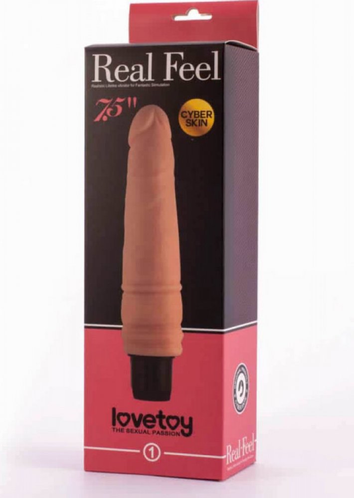 Real Feel Cyberskin Vibrator 1- je vyroben z příjemného materiálu napodobující lidskou pokožku. Jeho tvar je precizně zpracován včetně žilkování a vytvarovaného žaludu. Je 19 cm dlouhý a 3,6 cm široký. Vibrace lze plynule regulovat kolečkem vespod vibrátoru. Napájení je řešeno dvěma AAA bateriemi. Materiál TPR, ABS. Značka LoveToy.