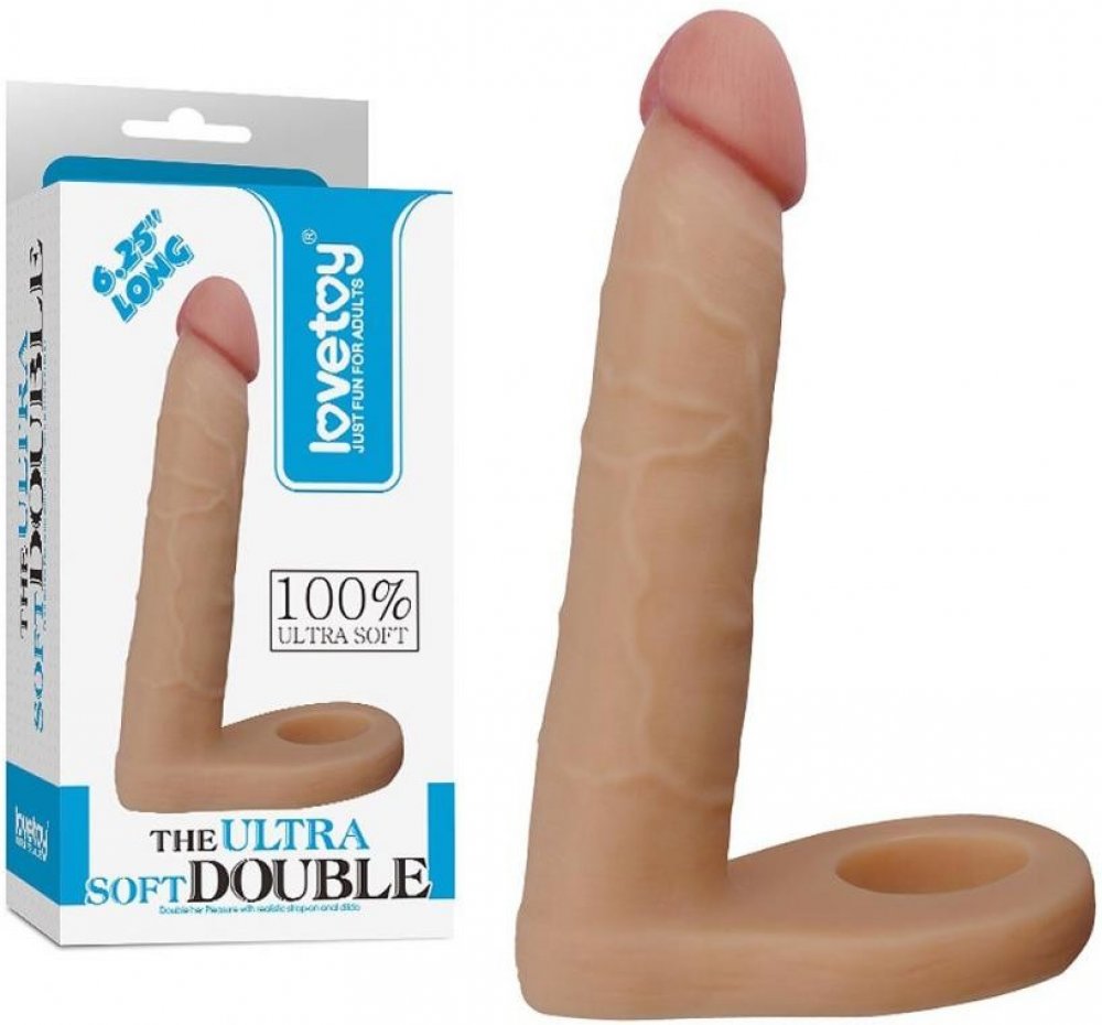 The Ultra Soft Double 6.25"- penis pro dvojité dráždění partnerky od LoveToy. Vyrobeno z měkkého materiálu v tělové barvě. Tento nasazovací penis je vhodný k análnímu i vaginálnímu použití. Double dildo si připevníte pomocí kroužku kolem svého penisu. Lze jej samozřejmě použít i jako klasické dildo. Délka 15,8 cm, průměr 2,9 cm. Materiál TPE. Značka LoveToy.