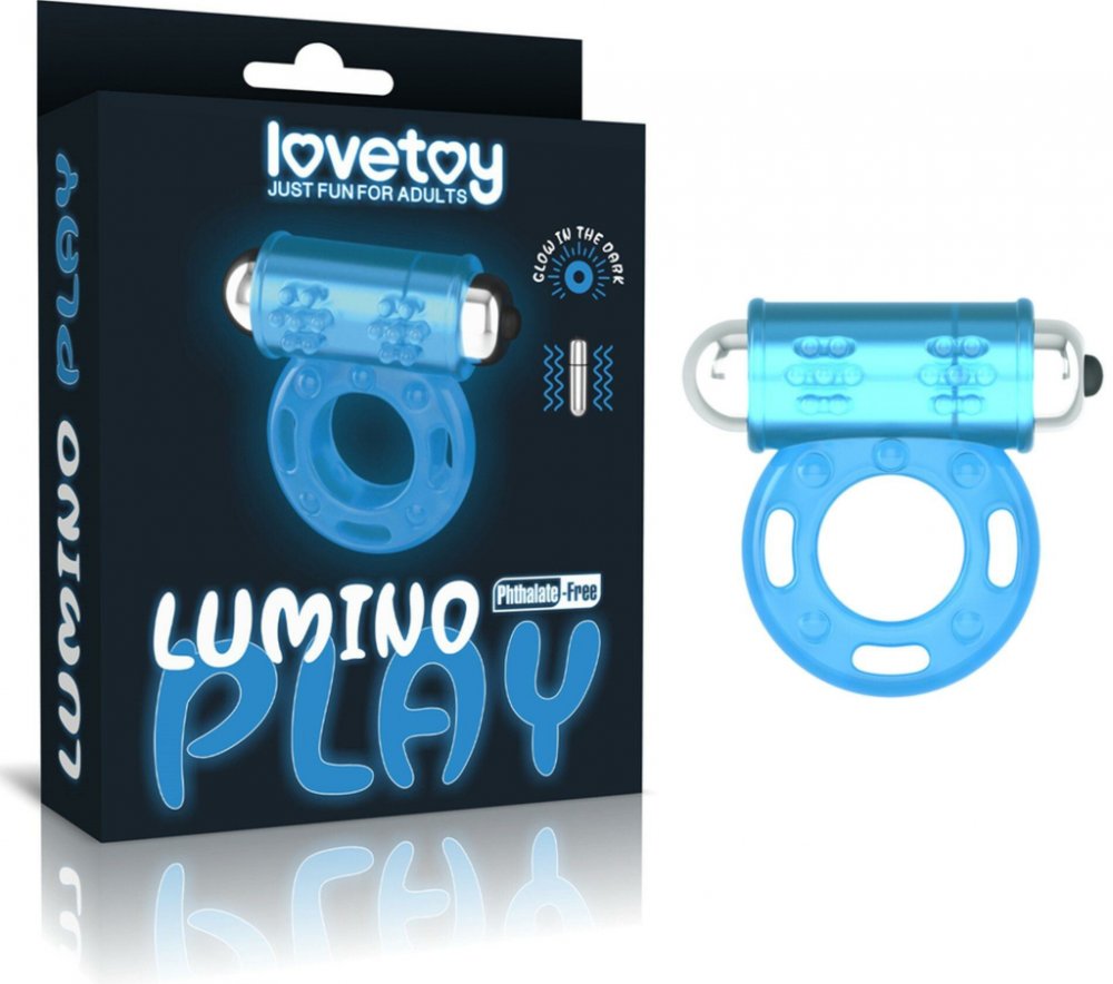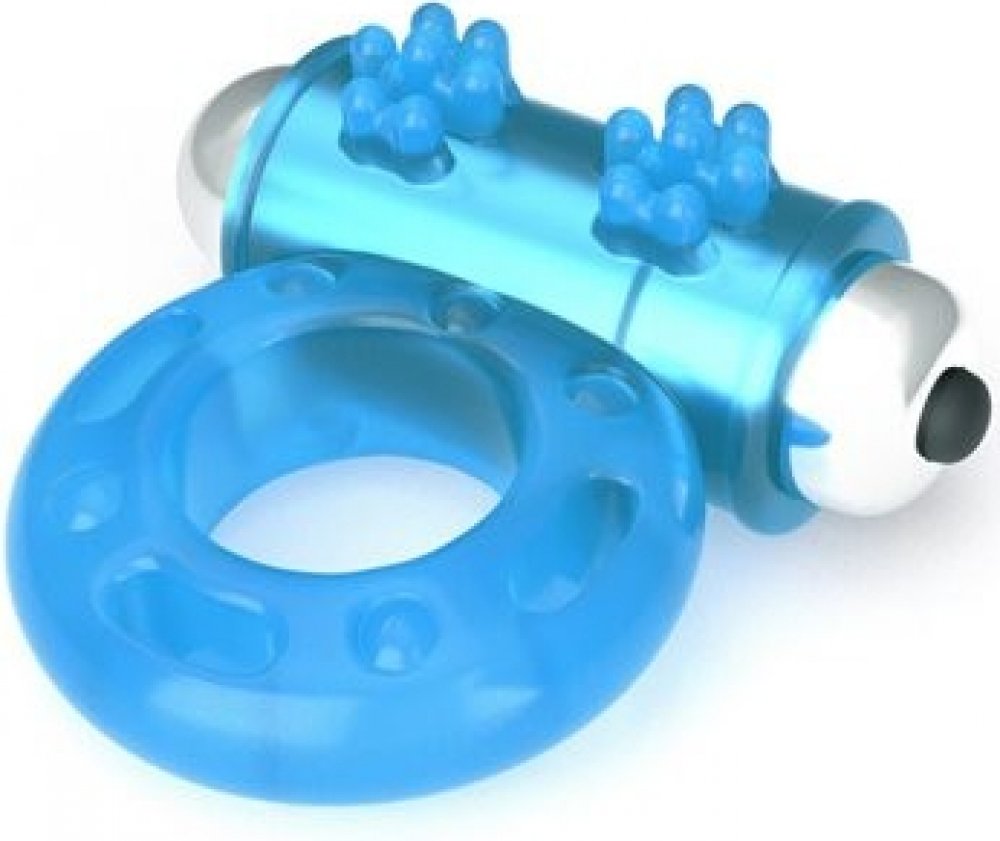 Vibrační kroužek pro muže, který svítí ve tmě. S výstupkem posetým nopky pro dráždění klitorisu. Kroužek v modré barvě z pružného TPE materiálu.