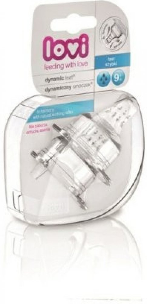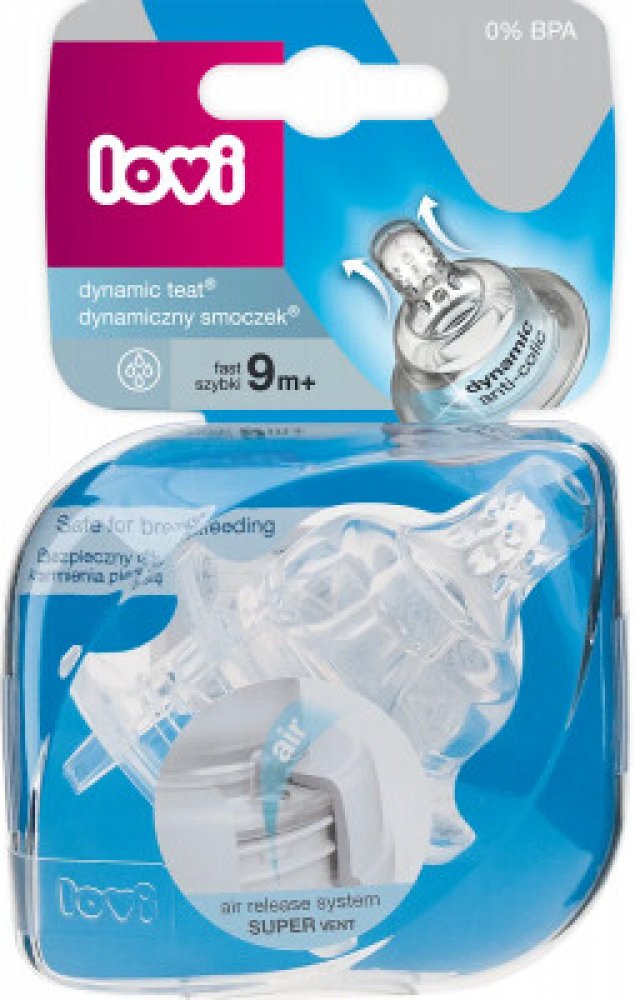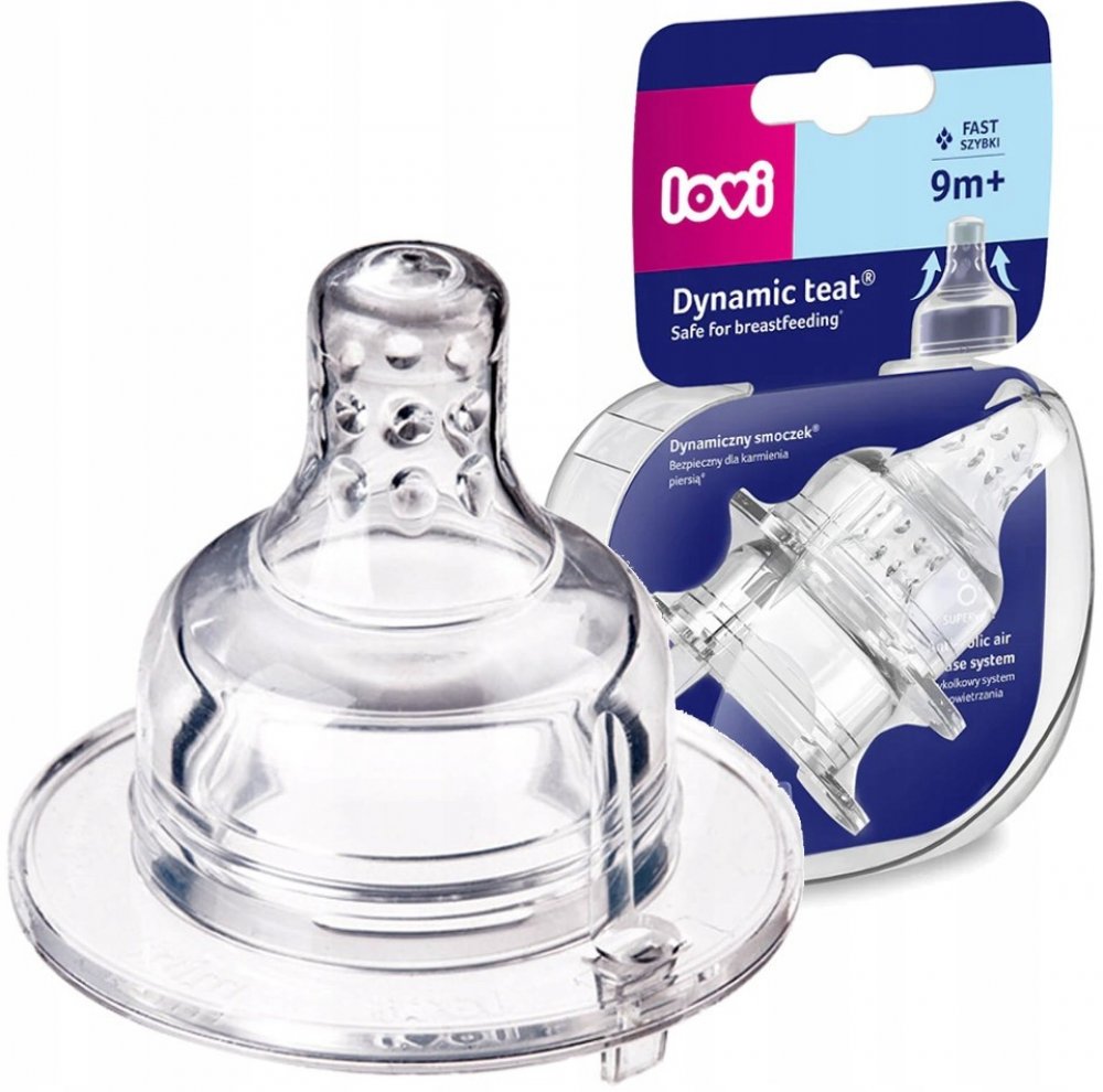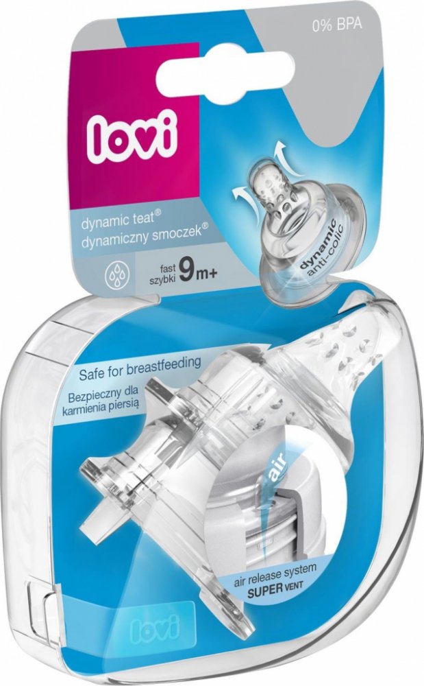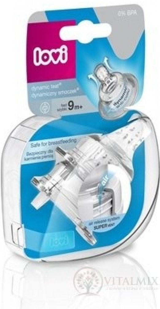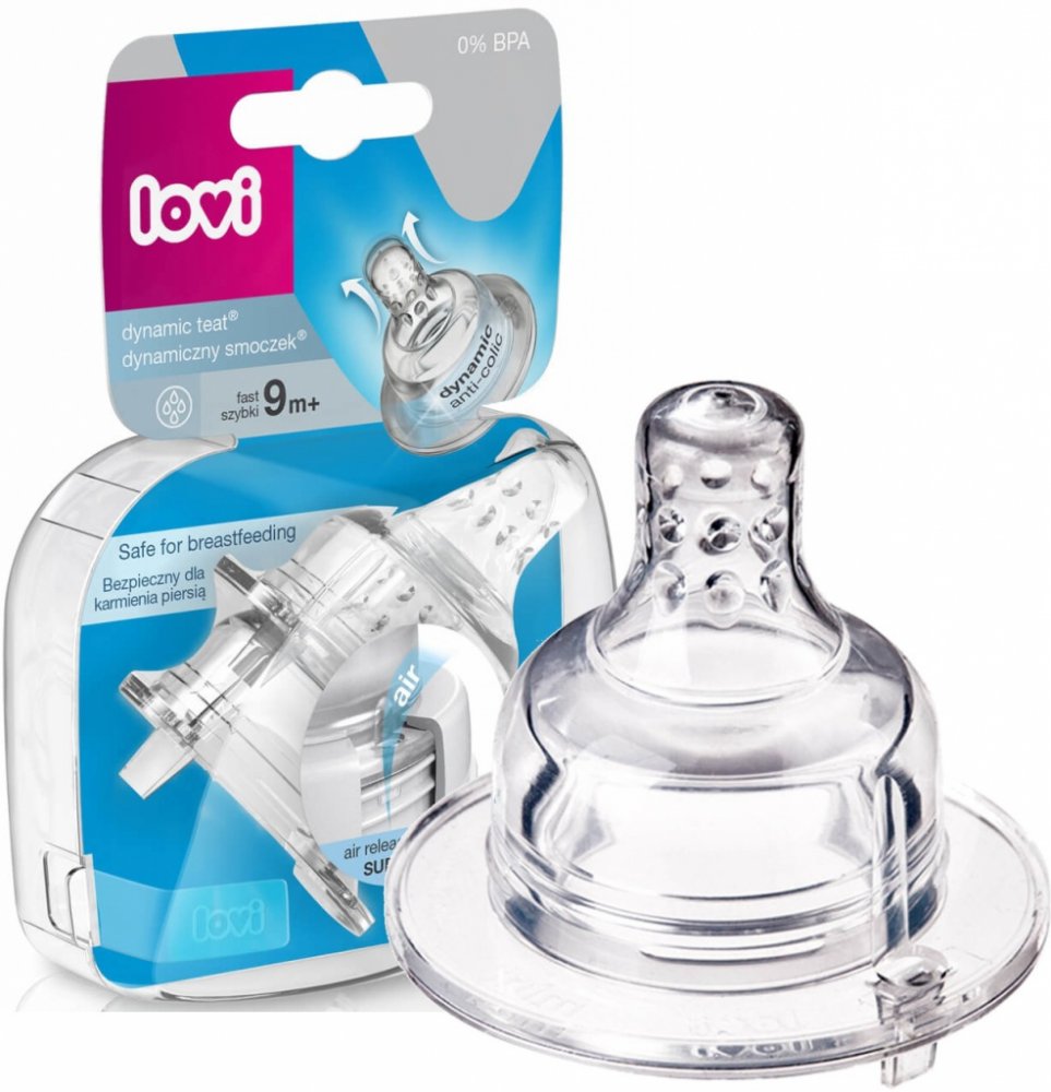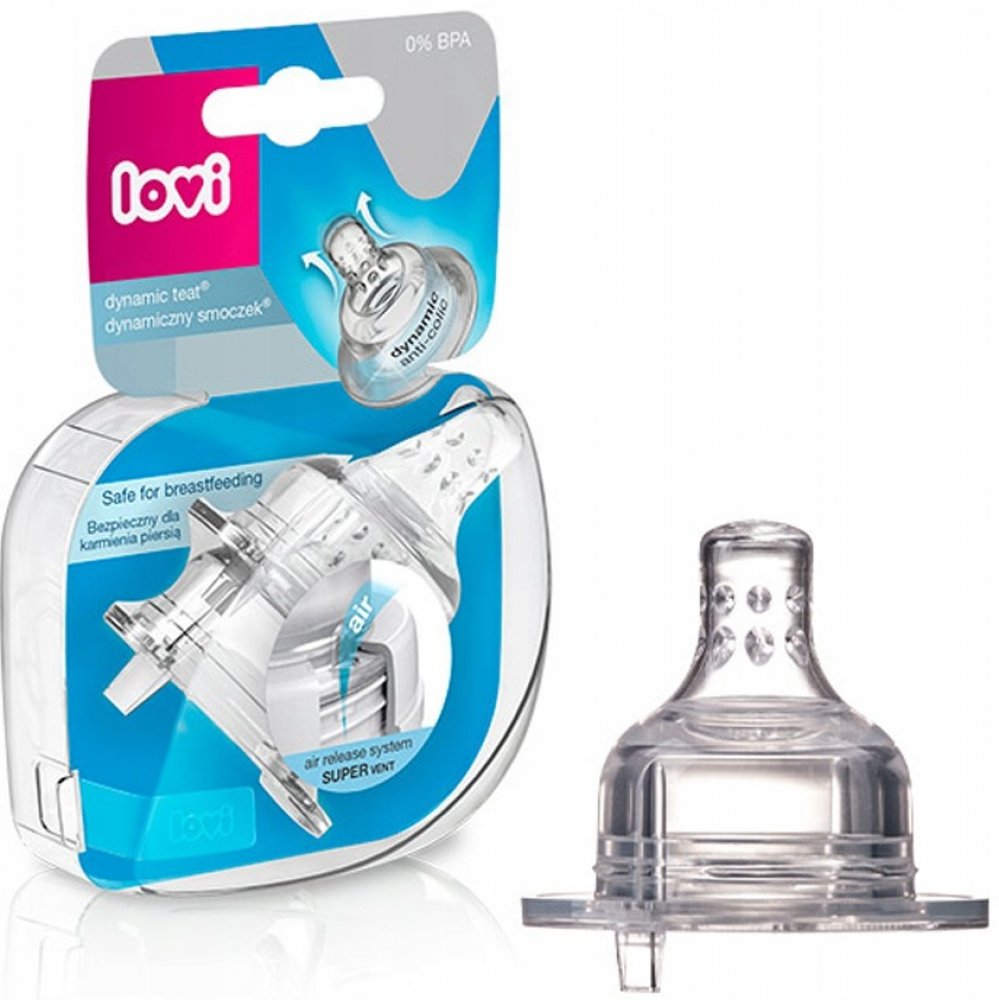 Dynamický dudlík Lovi vyrobený z nestejnorodých vrstev silikonu v průběhu krmení modifikuje svůj tvar (prodlužuje se), přizpůsobuje se rytmu a síle sání dítěte podobně jako matčin prs při kojení.