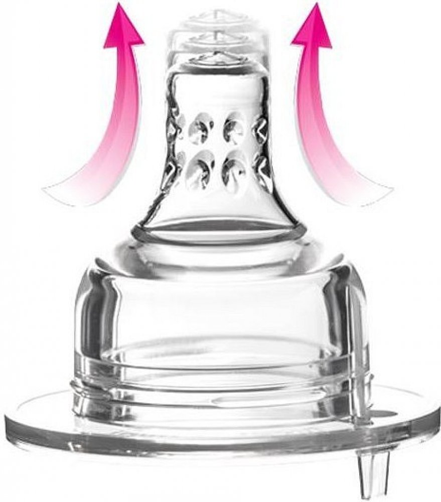 Systém vnitřních otvorů vytvořených podle modelu laktačních kanálků reguluje (zpomaluje) průtok pokrmu a stimuluje dítě k aktivnímu sání. Umožňuje kombinovat kojení a krmení z láhve.