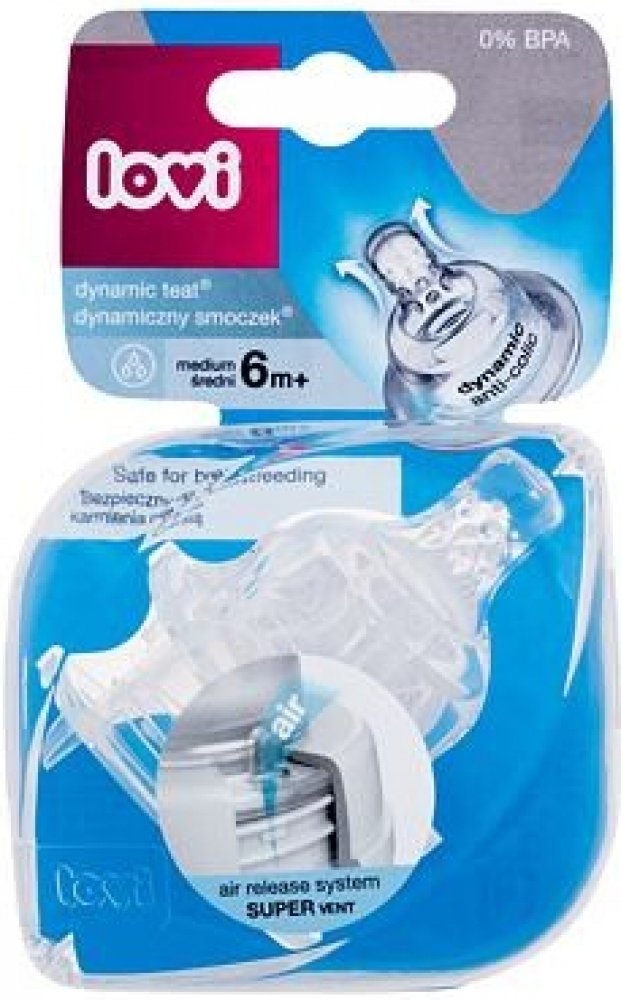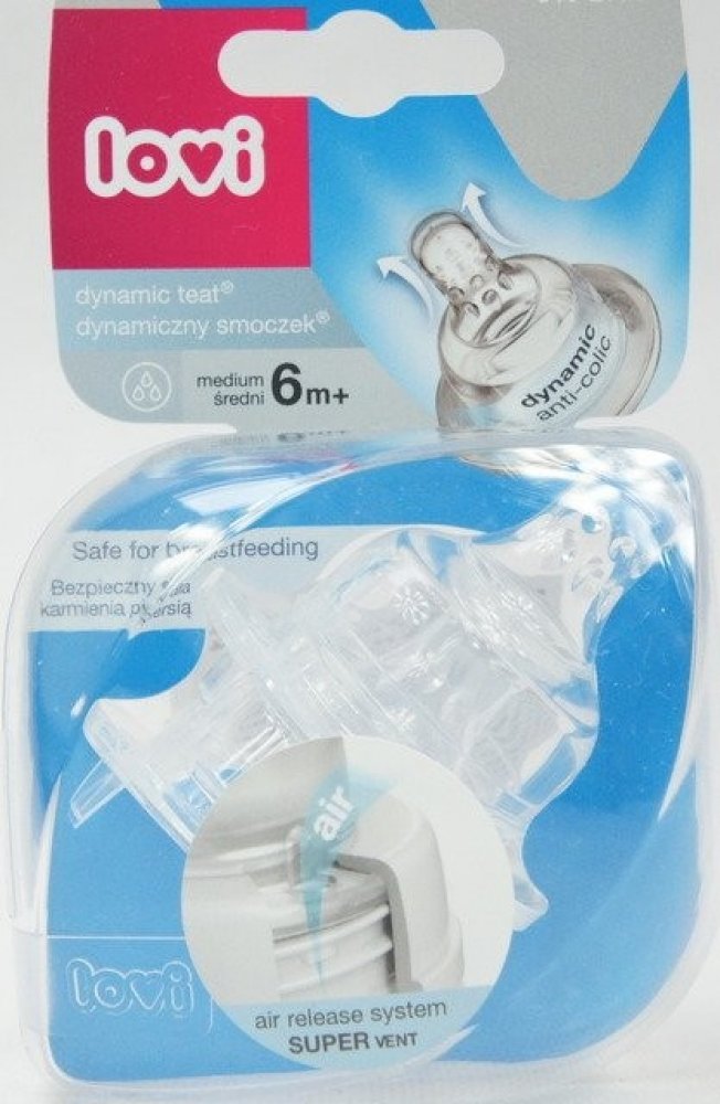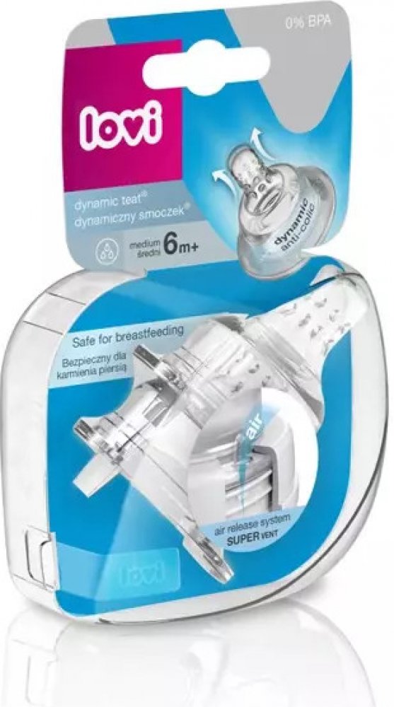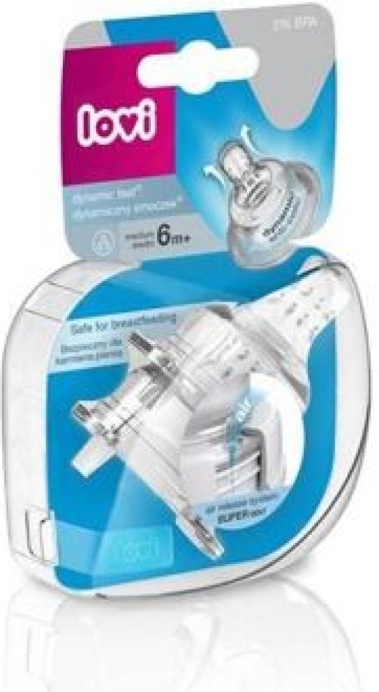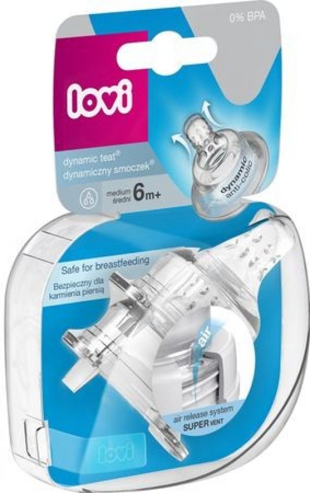 Dynamický dudlík Lovi vyrobený z nestejnorodých vrstev silikonu v průběhu krmení modifikuje svůj tvar (prodlužuje se), přizpůsobuje se rytmu a síle sání dítěte podobně jako matčin prs při kojení.