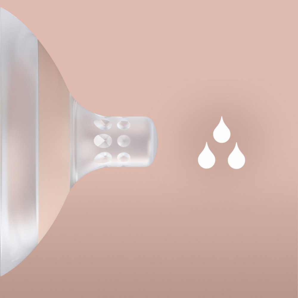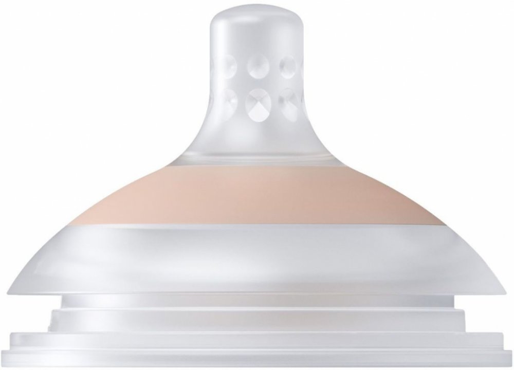 Vlastnosti: - pro děti od 6 měsíců - savička s variabilním průtokem - savička inspirována maminčiným prsem - přirozenost a pružnost, protože jemný prstenec na savičce připomíná dvorec bradavky - měkkost a sametost díky matnému povrchu savičky - tvar a proporce podle vzoru maminčiných prsou zajišťují, aby ústa dítěte byla umístěna ve správném úhlu - nenarušujte sací reflex, díky dynamické savičce - antikoliková savička - umožňuje umístit rty správně, miminko dýchá volně nosem, což snižuje riziko vzniku koliky - první savička s unikátní technologií dvou druhů silikonu s různou pevností - savičky s různým průtokem přizpůsobené vývoji dítěte - pouzdro k dezinfekci - neobsahuje BPA