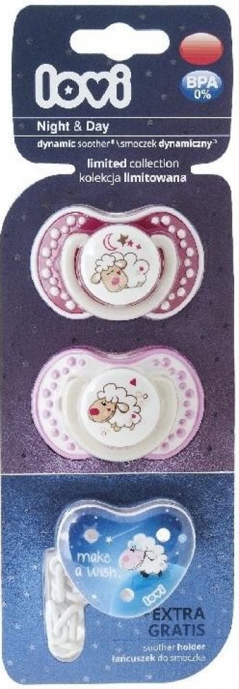 Dynamické dudlíky LOVI® byly vytvořeny ve spolupráci s neurologopedy. Unikátní design nestejnorodé vrstvy silikonu a symetrický tvar inspirovaný matčinou bradavkou. Osvěžující moderní vzory podtrhuje svítící úchyt ve tmě.