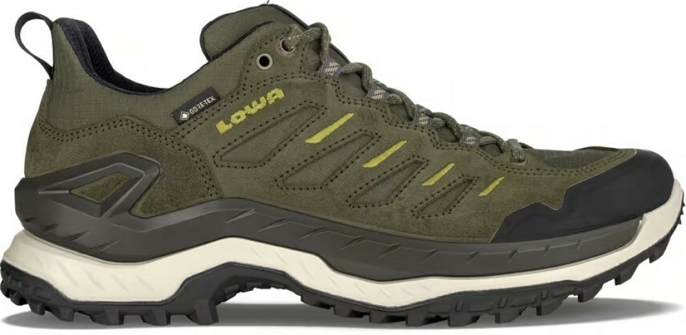 Lowa nízké semiš 990.0 g Gore-Tex na středně náročný terén na jednodenní turistiku khaki polobotky Innovo Gore-Tex, DynaPU jarní/podzimní na šněrování s plnou výbavou na středně náročnou turistiku se středně tuhou podešví s obsázkou na špičce ostatní pěnové technologie ostatní gumové směsi s výstuhou u prstů