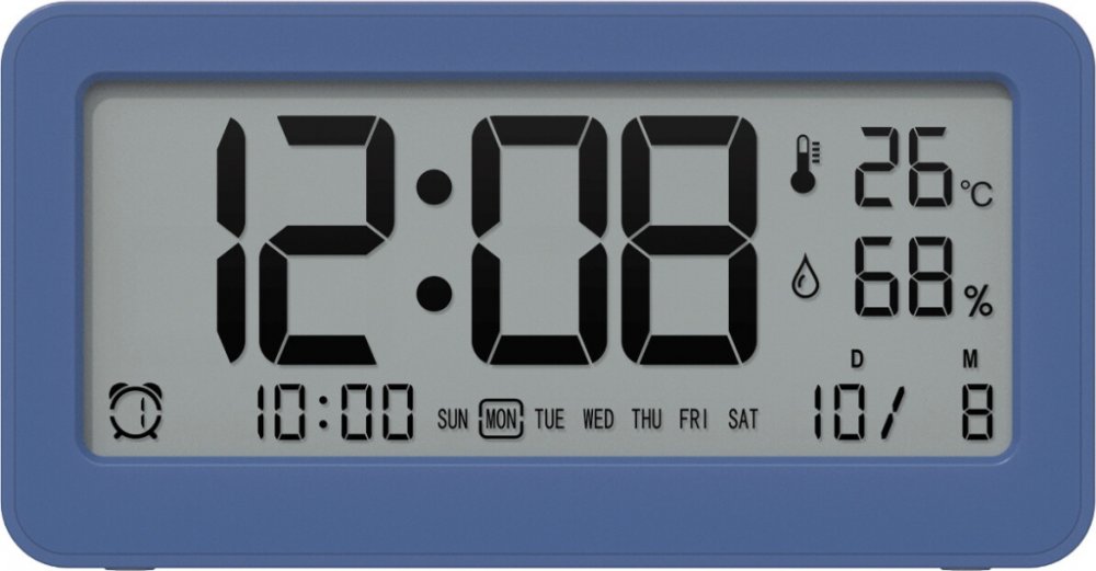 Multifunkční display - hodiny, den (anglicky), datum, budík, vnitřní teplota a vlhkost
