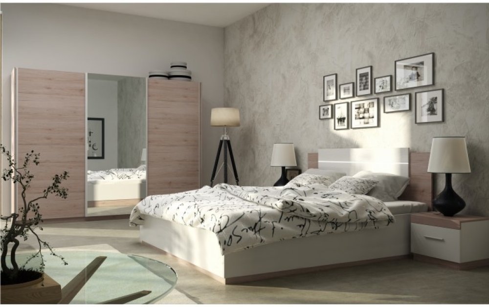 Komplet sestává ze skříně, postele a 2 nočních stolků. Barevné provedení: