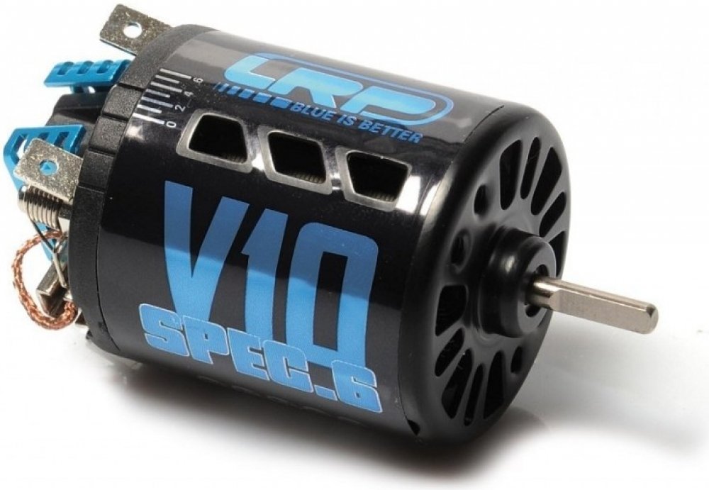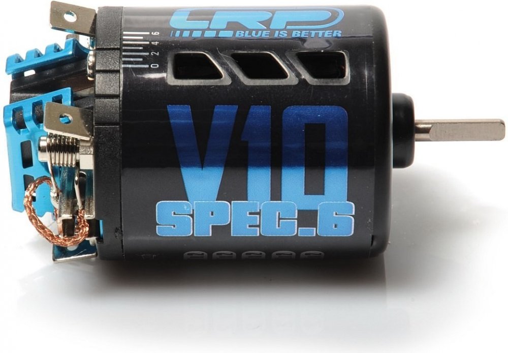 Stejnosměrný motor LRP Electronic V10 Spec.6 14x2T LRP Electronic. příslušenství k modelům. Stejnosměrný motor velikosti 540 s hřídelí uloženou v kuličkových ložiscích. Specialista na dlouhé závody má také zcela nový obal. Balíček doplňuje další ventilátor na rotoru. Navzdory nejvyššímu zatížení je tento motor ušetřen hromadění tepla, a díky novému tlumení uhlíků je jejich opotřebení výrazně nižší...