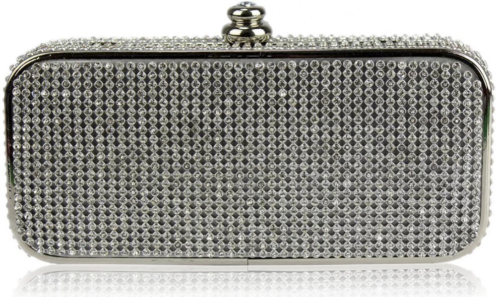 Dámské elegantní kabelka psaníčko s třpytivými kamínky. Společenská kabelka psaníčko má dlouhý stříbrný řetízek pro nošení přes rameno. Třpytivé psaníčko se otevírá pomocí spony s kamínky. Slavnostní třpytivá kabelka psaníčko vhodné pro nošení na plesy, svatby a jiné večerní party.